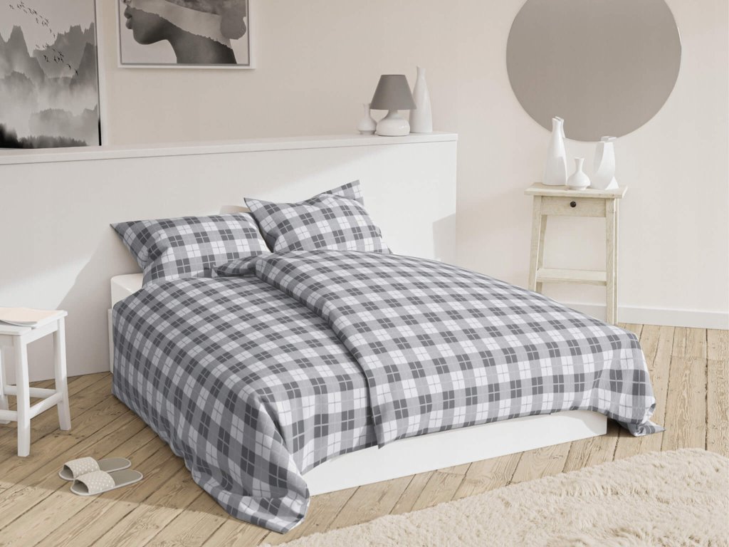 Obliečky na posteľnú bielizeň Klarisa sú nielen ochranným prvkom pre vankúš a perinu, ale aj estetickým doplnkom do vašej spálne. Sú skladané z obliečok na perinu a vankúš, poskytujú pohodlie počas spánku a uľahčujú udržiavanie posteľného prádla čistého. Vhodná do každej izby, s neutrálnym farebným prevedením v sivých tónoch. Tieto obliečky sú vyrobené z úpletov s certifikátom OekoTex 100, čo zaručuje vysoké štandardy kvality a bezpečnosti. Materiál z 100 % bavlny s gramážou 120g/m2 evokuje ľan a po vypraní zjemní a získa hladký povrch. Zapínajú sa bielym zipsom s prešívaním, chrániacim pred poškodením, a sú vhodné aj pre alergikov, keďže sú plastové. Odporúča sa prať ich naruby pri teplote do 40° C.