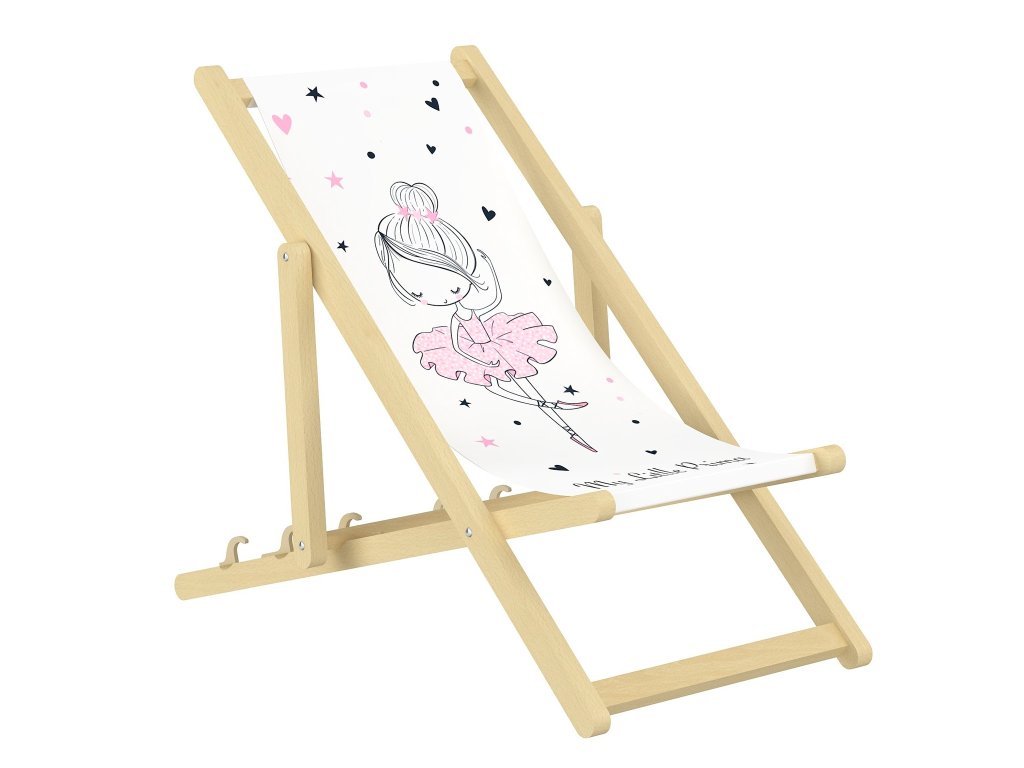 Zoznámte sa s krásnym detským lehátkom z kolekcie Ballerina, vyrobeným z lešteného, nelakovaného bukového dreva. Disponuje trojstupňovým nastavením chrbtovej opierky a takisto ochranou proti náhodnému zloženiu. Znečistené lehátko by sa malo čistiť vlhkou handričkou. Látka na sedenie je vysoko kvalitná a odolná voči UV žiareniu. Dievčatá, ktoré milujú tanec, určite ocenia jej vzor s baletkou. Pevná konštrukcia rámu je chránená proti samovoľnému odskrutkovaniu. Zaoblené konce prvkov chránia dieťa pred úrazom. Odolný drevený rám vydrží zaťaženie až 100 kg. Detské lehátko je ideálne na záhradu, pláž, balkón, terasu alebo do detskej izby.