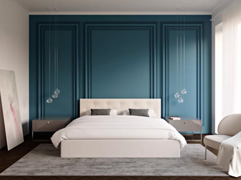 Čelo postele zdobia elegantné krištáľové gombíky.