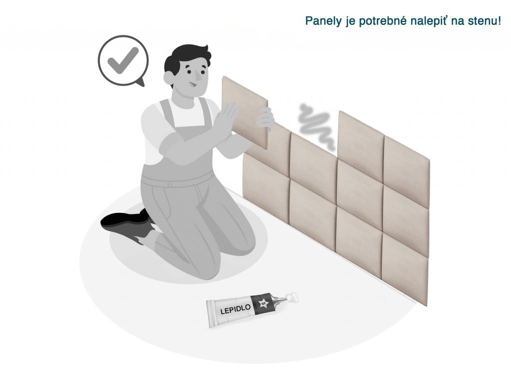 Panel sa skladá z 8 mm hrubej dosky, peny a čalúnenia. Čalúnenie je z odolnej velúrovej látky. Rovnaký materiál je použitý aj na posteliach Dony. Panel je potrebné nalepiť na stenu. Lepidlo nie je súčasťou balenia.