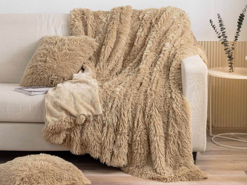 Hrejivá deka Furry sa stane neodmysliteľnou súčasťou Vašich chladných dní. Môžete ju použiť ako prikrývku či ako štýlový prehoz na sedačku alebo posteľ. Horná strana s vysokým vlasom je vyrobená zo 100% polyesteru, pričom spodná je z mikrovlákna, s gramážou 460g/m². Chlpatá štruktúra s dĺžkou cca 3 cm jej dodáva priestorový efekt. Je možné ju oprať ručne či v práčke do 30°C. Neodporúčame ju žehliť, bieliť ani chemicky čistiť.