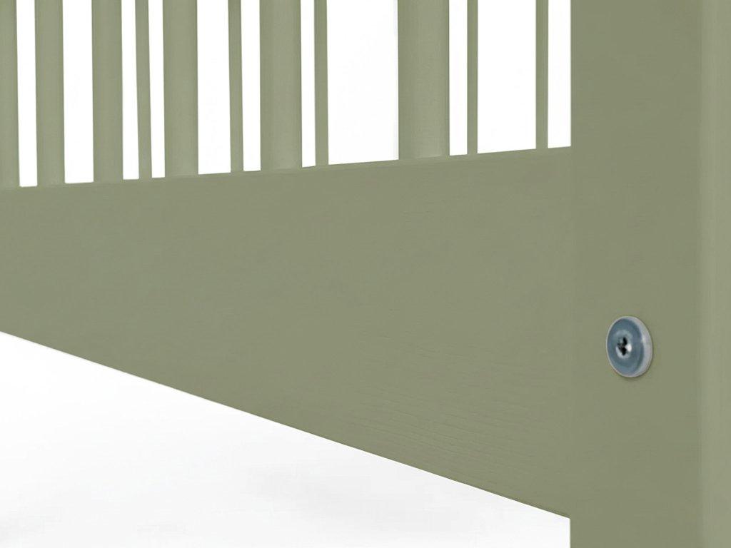 Lesanka v olivovom odtieni predstavuje lôžko, ideálne pre pokojný spánok a zvládne aj dynamickú detskú hru. Obsahuje pevný rošt, ktorý zabezpečuje správnu cirkuláciu vzduchu okolo matraca. Vďaka mimoriadne stabilnej konštrukcii dokáže bez problémov odolať záťaži až do 120 kg, čo potvrdzuje jej kvalitu pre spánok aj detské hranie. Pre povrchovú úpravu sú vybrané ekologické a hypoalergénne laky na vodnej báze, ktoré sú absolútne šetrné k zdraviu a životnému prostrediu. Olivový tón vnesie do detského sveta pocit harmónie a stane sa trvalým prvkom interiéru, ktorý rastie s vaším dieťaťom.