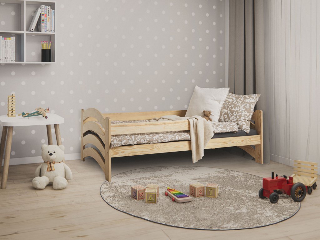 Zabezpečte svojmu dieťaťu pohodlný a bezpečný spánok s masívnou borovicovou posteľou Wiki. Tento model s oblými čelami bol navrhnutý s dôrazom na bezpečnosť a maximálne pohodlie najmenších. Pevná konštrukcia z borovicového dreva s hrúbkou 20 mm zaručuje stabilitu a dlhú životnosť, zatiaľ čo ochranná zábrana spoľahlivo zabraňuje pádom počas spánku, čím prináša rodičom pokojný spánok bez starostí. S rozmermi 140 × 80 cm je táto posteľ ideálnou voľbou pre deti, ktoré už prerástli detskú postieľku a potrebujú viac priestoru na komfortný odpočinok. Vďaka svojim kompaktným rozmerom sa skvele hodí aj do menších izieb. Prírodné borovicové drevo v kombinácii s jemnými líniami a oblými hranami ľahko zapadne do akéhokoľvek interiéru. Stačí ju doplniť o farebné textílie či hravé dekorácie a vytvoríte útulný kútik, v ktorom sa vaše dieťa bude cítiť príjemne a bezpečne.