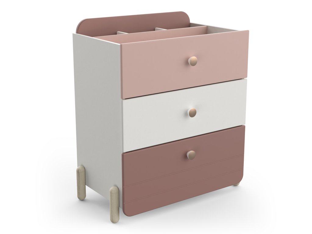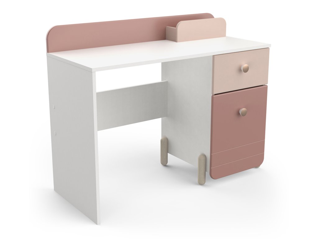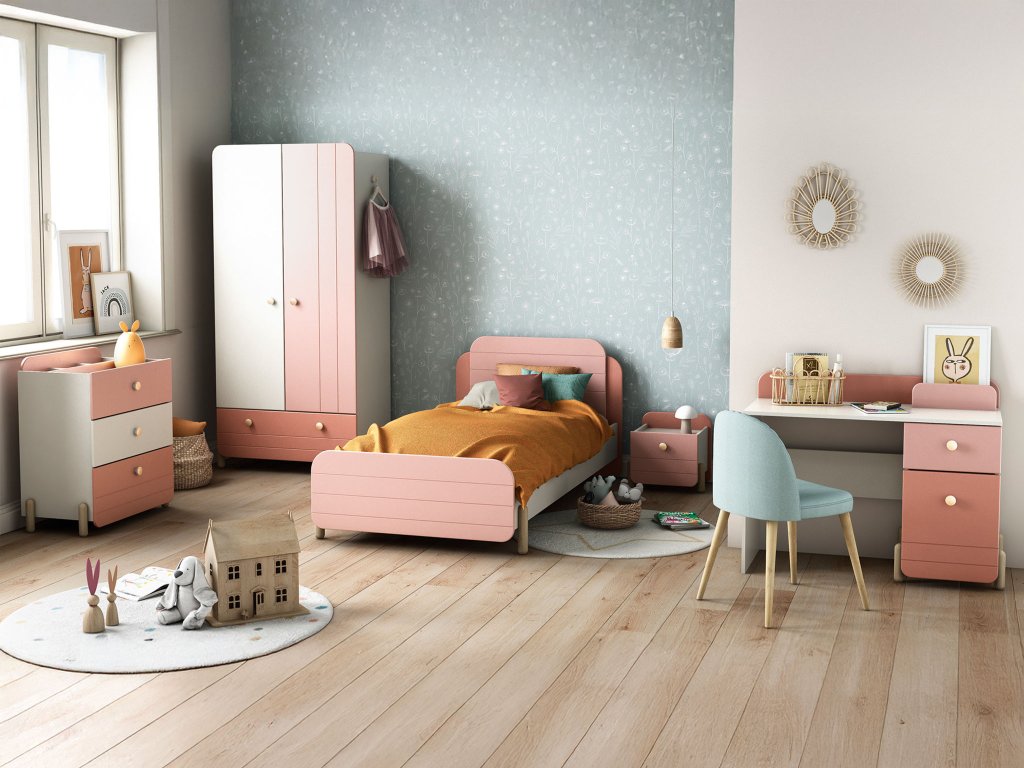 S kolekciou detského nábytku JADE vytvoríte izbu vašej malej princeznej v jemnom, ženský a zároveň modernom štýle. Kombinácia matnej ružovej a bielej farby, doplnená o hladké zaoblené tvary a úchytky v odtieni ružového zlata, pôsobí nežne, elegantne a bezpečne. Masívne drevené nožičky so svetlým dubovým dekorom dodávajú nábytku ľahkosť a stabilitu.