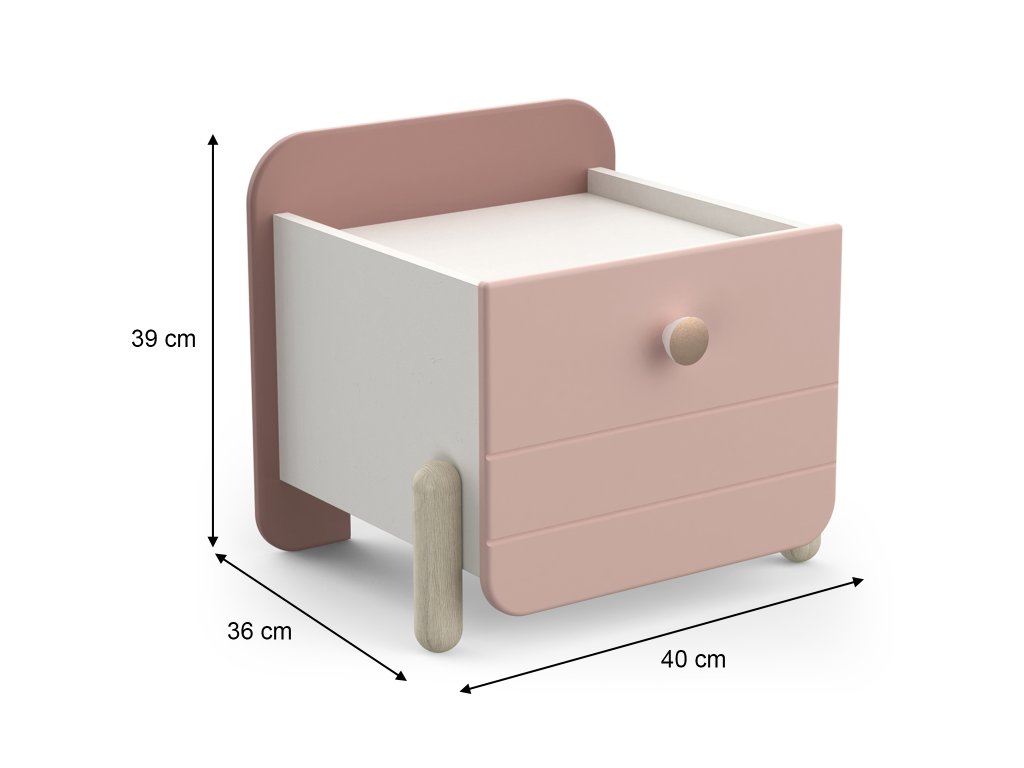 - Nočný stolík - so zásuvkou a odkladacou plochou na každodenné drobnosti Rozmer (šxvxh): 40 x 39 x 36 cm.