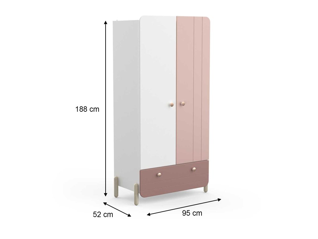 - Šatníková skriňa - má vešiakovú tyč, praktickú policu a zásuvku v spodnej časti. Rozmer (šxvxh): 95 x 188 x 52 cm.