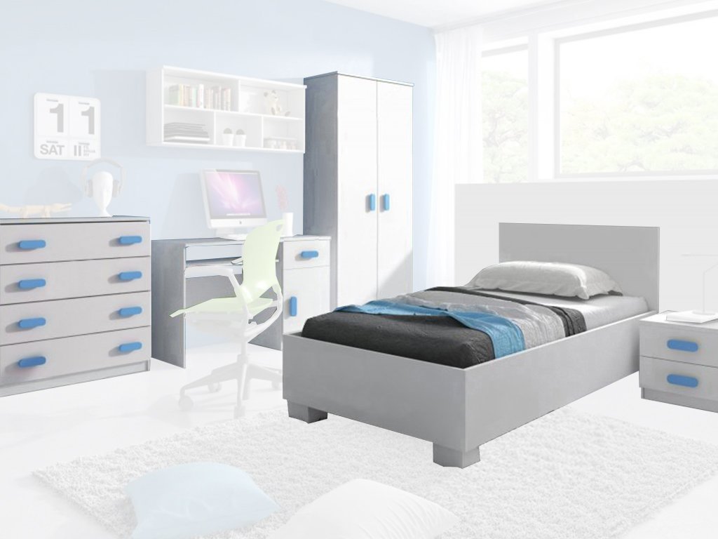 Detská izba Loop obsahuje: písací stôl, komodu, šatníkovú skriňu, detskú posteľ 200x90 cm a nočný stolík.
