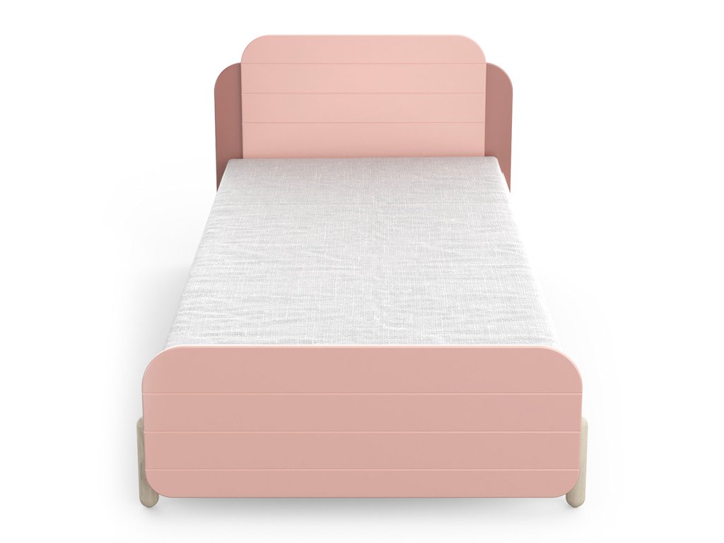 Dievčenská posteľ Jade 90×200 je navrhnutá tak, aby do detskej izby vniesla nežnosť, hravosť a prirodzenú pohodu. Kombinácia matnej ružovej a bielej farby pôsobí svetlo a príjemne, zatiaľ čo jemne zaoblené línie postele vytvárajú bezpečné a priateľské prostredie pre menšie deti. Vizuálnu ľahkosť dopĺňajú nožičky z masívneho dreva v dekore svetlého duba, ktoré dodávajú posteli prírodný charakter a pevný základ.