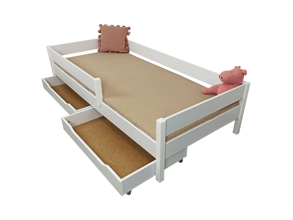 Detská posteľ Mix je dodávaná spolu s demontovateľnými ochrannými bariérkami a s pevným latovým roštom s nosnosťou 150 kg. Posteľ nie je dodávaná s úložným boxom. Úložný box (skladá sa z dvoch samostatných boxov) je možné doobjednať za príplatok.