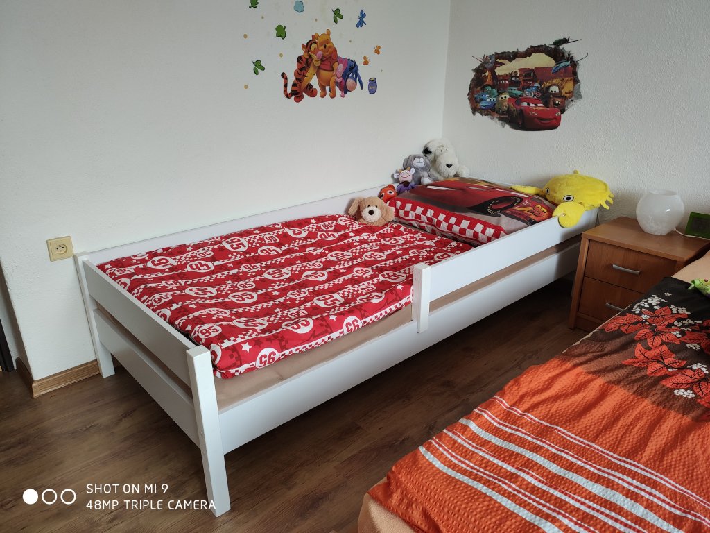 - Materiál: nohy - borovicový masív, boky a rám postele - DTD