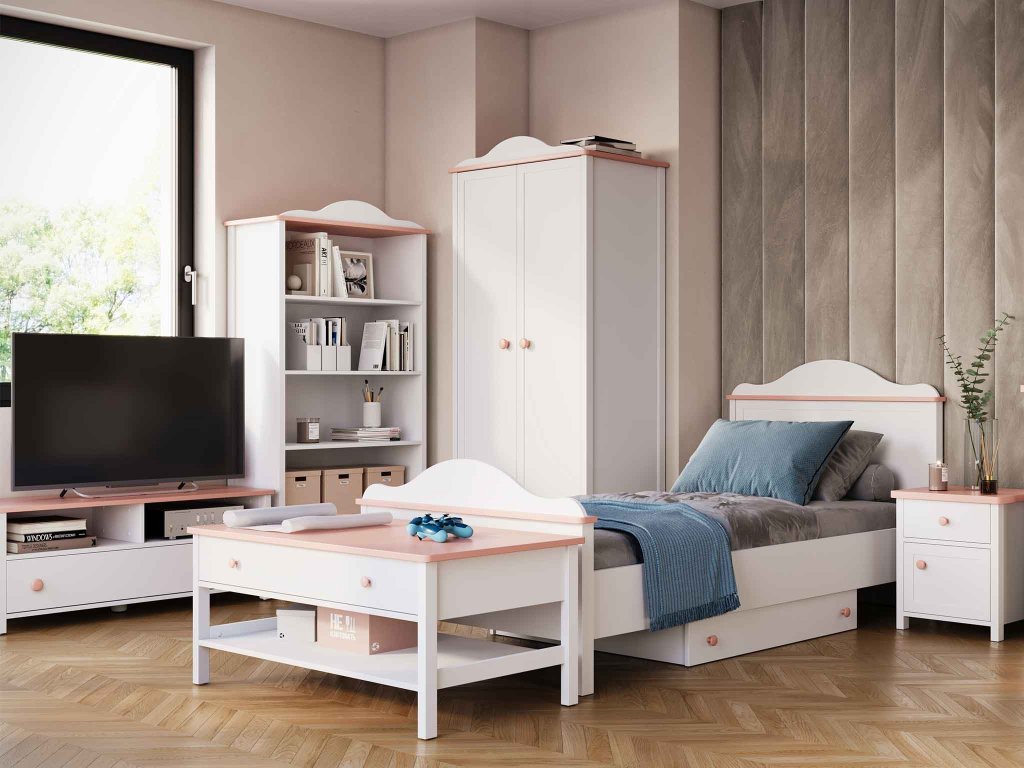 Kolekcia nábytku do detskej izby LUNA osloví všetky dievčatá, ktoré milujú rozprávky o princeznách alebo vílach. Pre kolekciu nábytku Luna je charakteristické jemné zaoblenie v tvare vlny, ktoré zdobí napríklad detskú posteľ LUNA. Z tejto kolekcie máme v ponuke detský regál na knihy, dve komody, písací stôl a omnoho viac. Zariaďte celú detskú izbu vkusným nábytkom z jednej kolekcie, ktorá vašej dcérke vydrží až kým z nej nebude veľká slečna.
