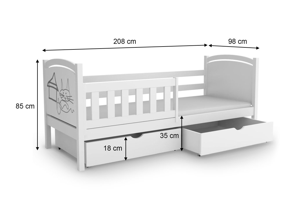 Detská posteľ s úložným priestorom Neos sa predáva bez matraca. V prípade, že by ste si chceli k posteli dokúpiť matrac máme pre vás bohatú ponuku.