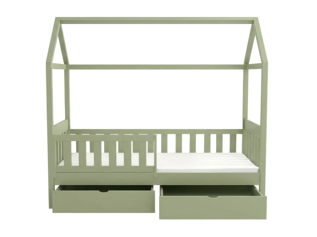V detskej izbe sa olivová domčeková posteľ Johny 90 × 200 cm stane miestom, kde sa fantázia spája s pohodlím. Jemný prírodný odtieň vytvára harmonickú a upokojujúcu atmosféru vhodnú pre chlapcov aj dievčatá. Tvar domčeka podporuje hry, čítanie aj odpočinok, a tak sa posteľ rýchlo stane obľúbeným miestom detí. Masívna borovicová konštrukcia zabezpečuje pevnosť a stabilitu, zatiaľ čo dve praktické zásuvky poskytujú úložný priestor na hračky, oblečenie alebo školské potreby. O bezpečnosť sa stará odnímateľná bariéra, ktorá minimalizuje riziko pádu a dodáva rodičom pokoj na duši. Táto posteľ je ideálnou kombináciou funkčnosti, bezpečia a útulného dizajnu.