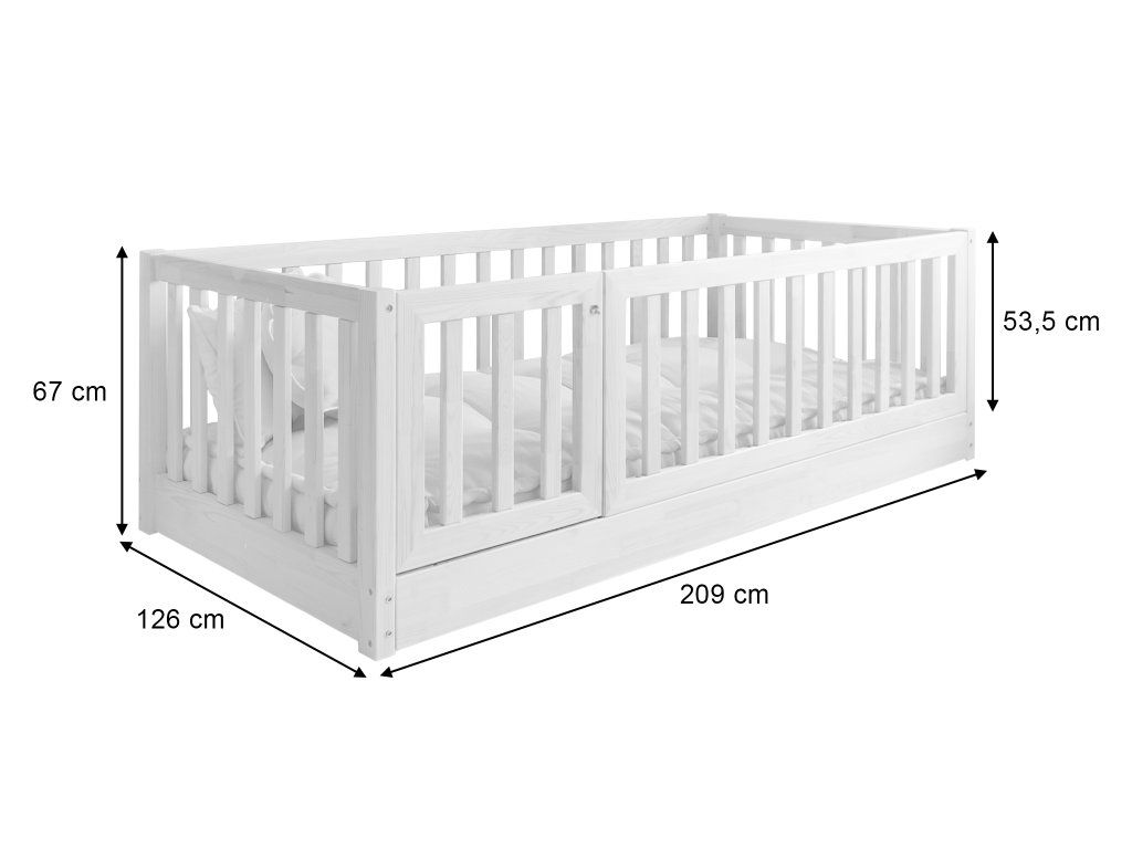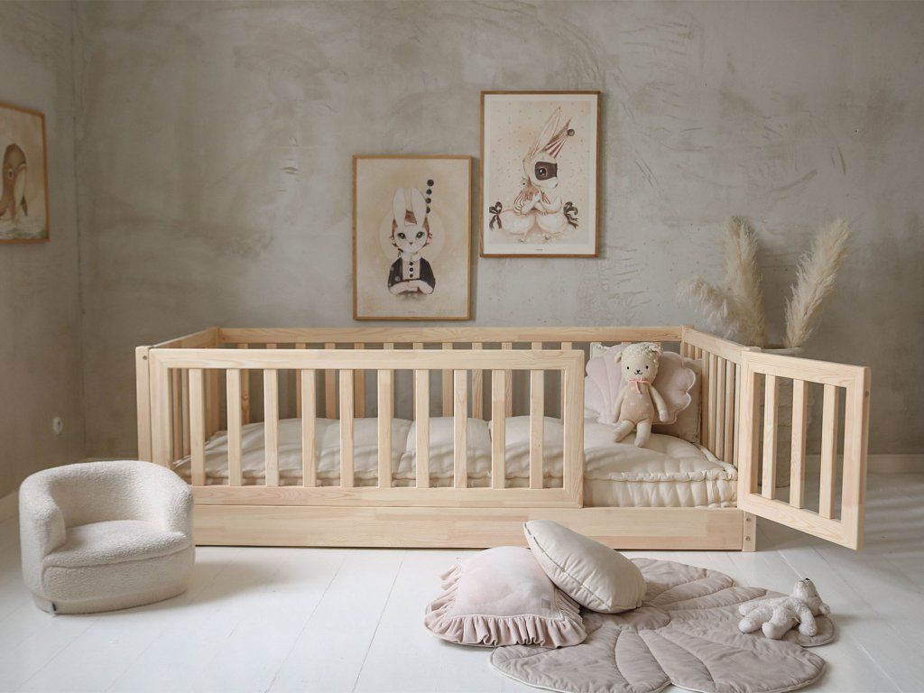 Cloudy Nest I prináša kombináciu kvality a praktických detailov. Pevná konštrukcia z masívneho dreva zaručuje stabilitu, zatiaľ čo hladké opracovanie a zaoblené hrany zvyšujú bezpečnosť pri používaní. Bočná zábrana s dvierkami uľahčuje manipuláciu a chráni dieťa pred pádom. Nadčasový dizajn umožňuje jednoduché kombinovanie s rôznymi štýlmi detského nábytku.