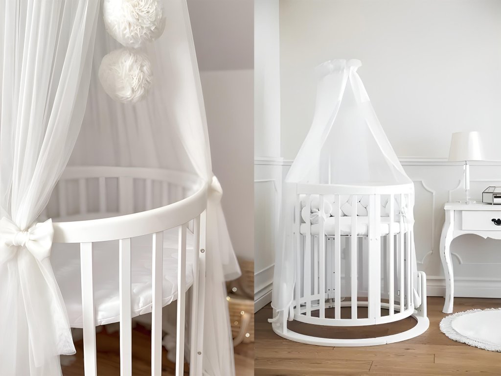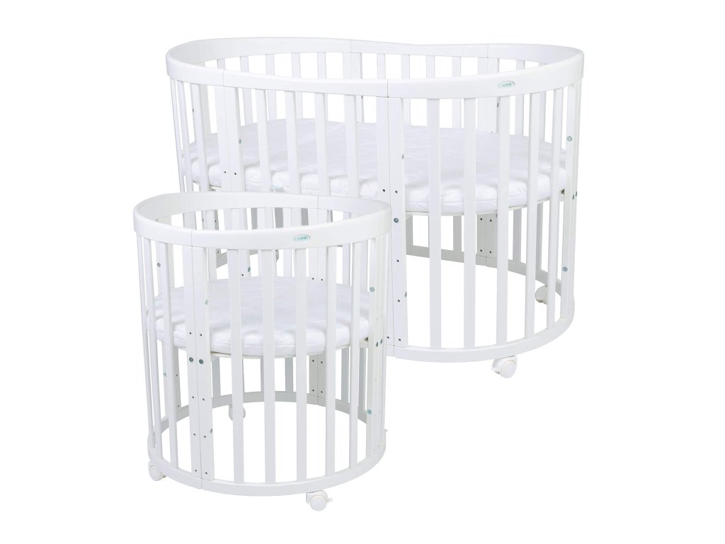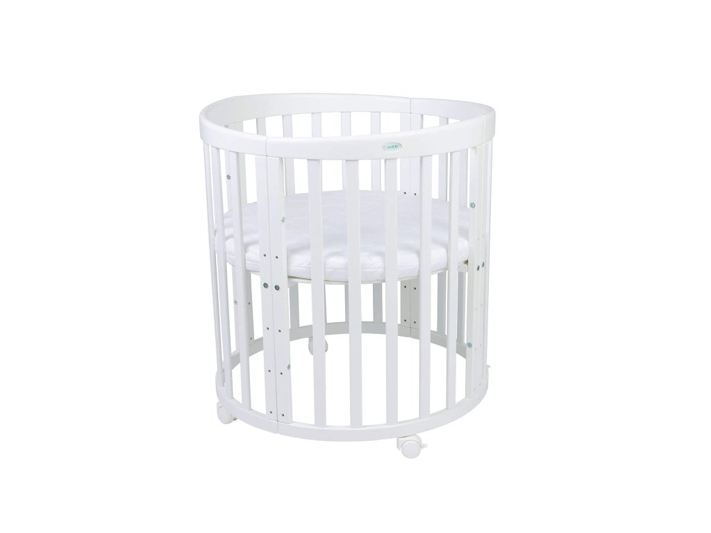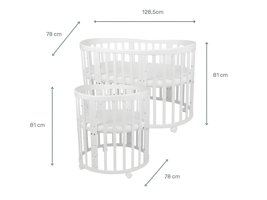 Výnimočná detská postieľka 7v1 v klasickej bielej farbe zapadne do ktorejkoľvek spálne. Rastúca postieľka má pekný okrúhly tvar, ktorý sa postupne rozšíri na ovál. Multifunkčná, okrúhla postieľka je natoľko variabilná, že ju môžete rôznymi spôsobmi využívať pre deti od 0 do 10 rokov. Záleží len na tom, ako rýchlo bude bábätko rásť. V prvých mesiacoch sa môžete rozhodnúť či si zložíte iba prístelku k manželskej posteli, alebo si rovno poskladáte malú rastúcu postieľku s prebaľovacím pultom. Okrúhla rastúca postieľka je dostupná v niekoľkých farebných prevedeniach.