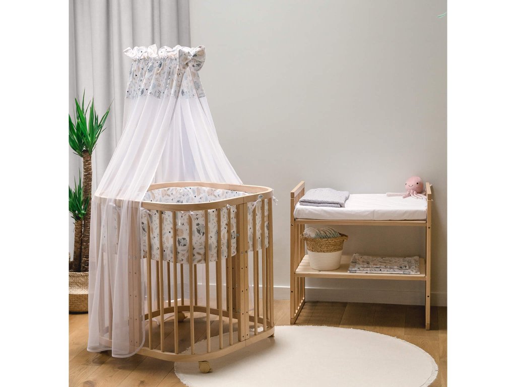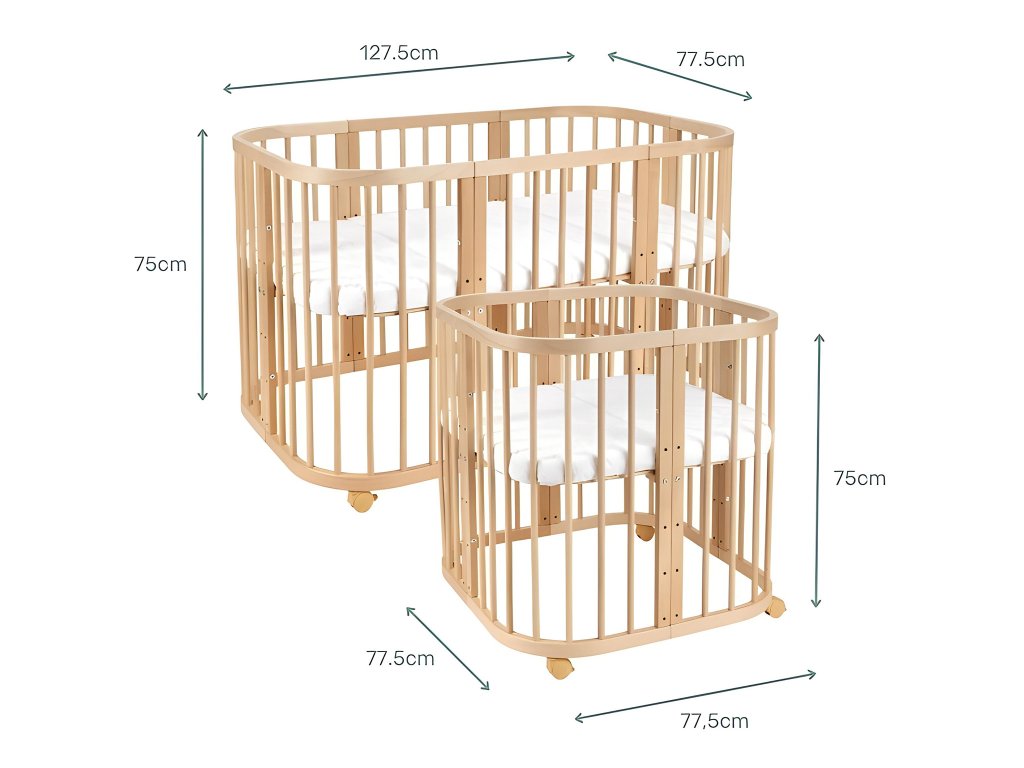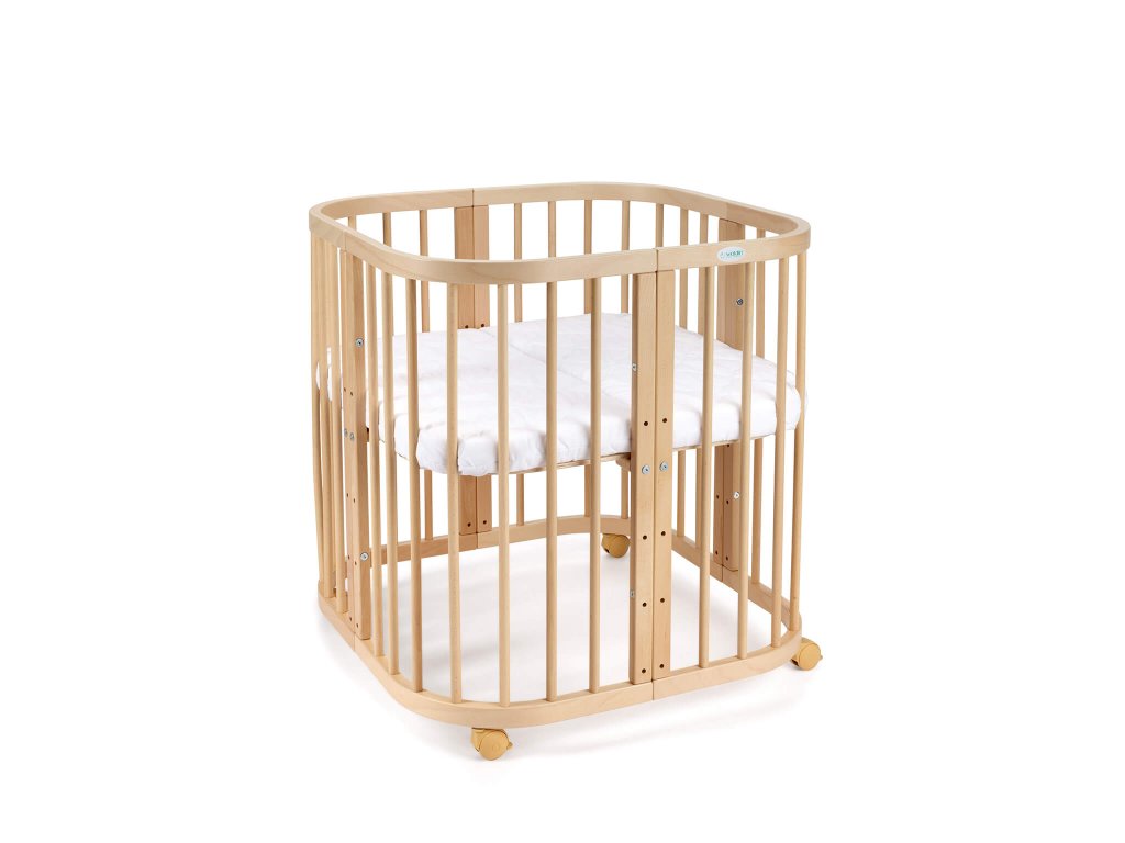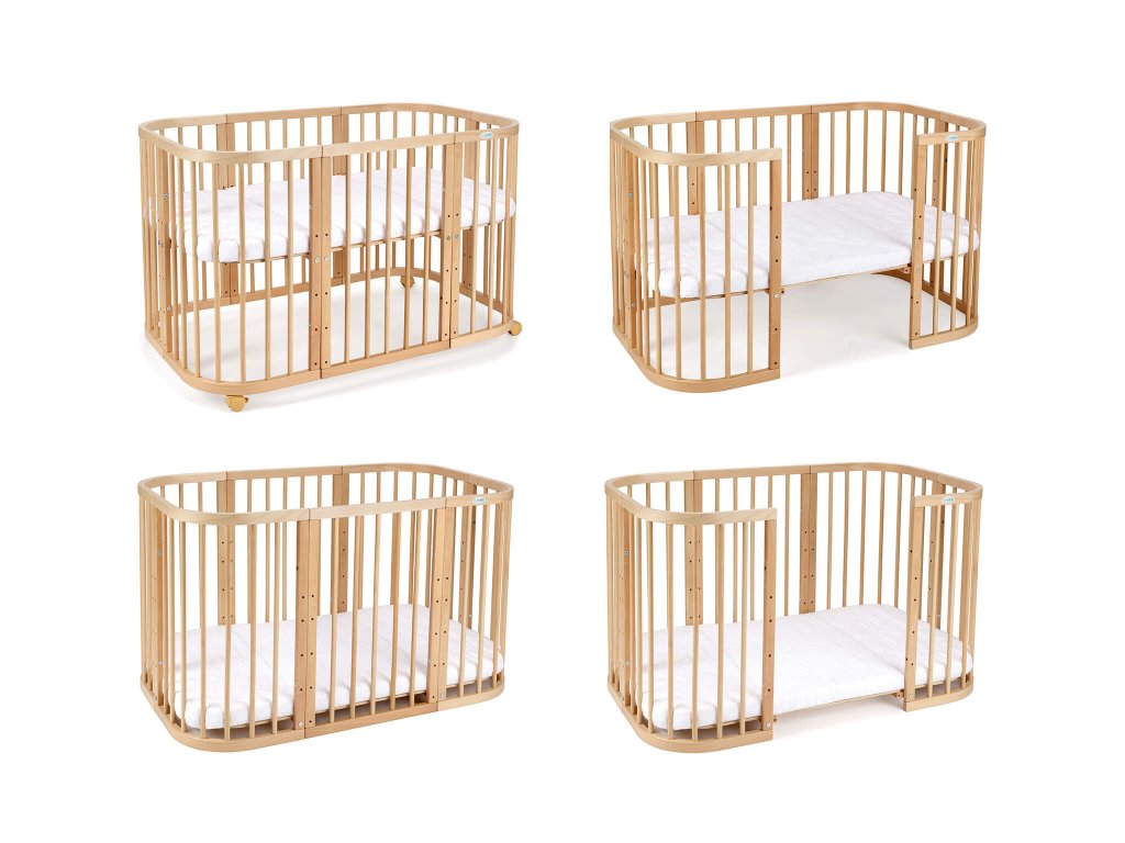 Multifunkčná rastúca postieľka 7v1 je bezpečná pre deti a praktická pre rodičov. Postieľka je z bukového dreva, ktoré je ošetrené ekologickým náterom na báze vody. Náter spĺňa EU normu EV 71-3. Súčasťou postieľky je aj rošt, ktorého výška sa dá nastavovať do 5 polôh. V najnižšej polohe 7 cm a v najvyššej 49 cm. Pokiaľ si k postieľke primontujete kolieska, zdvihne sa o ďalších 6 cm.