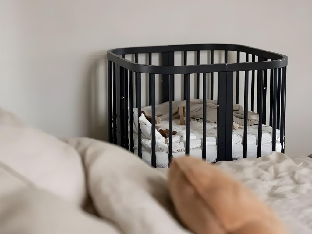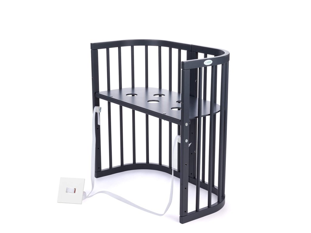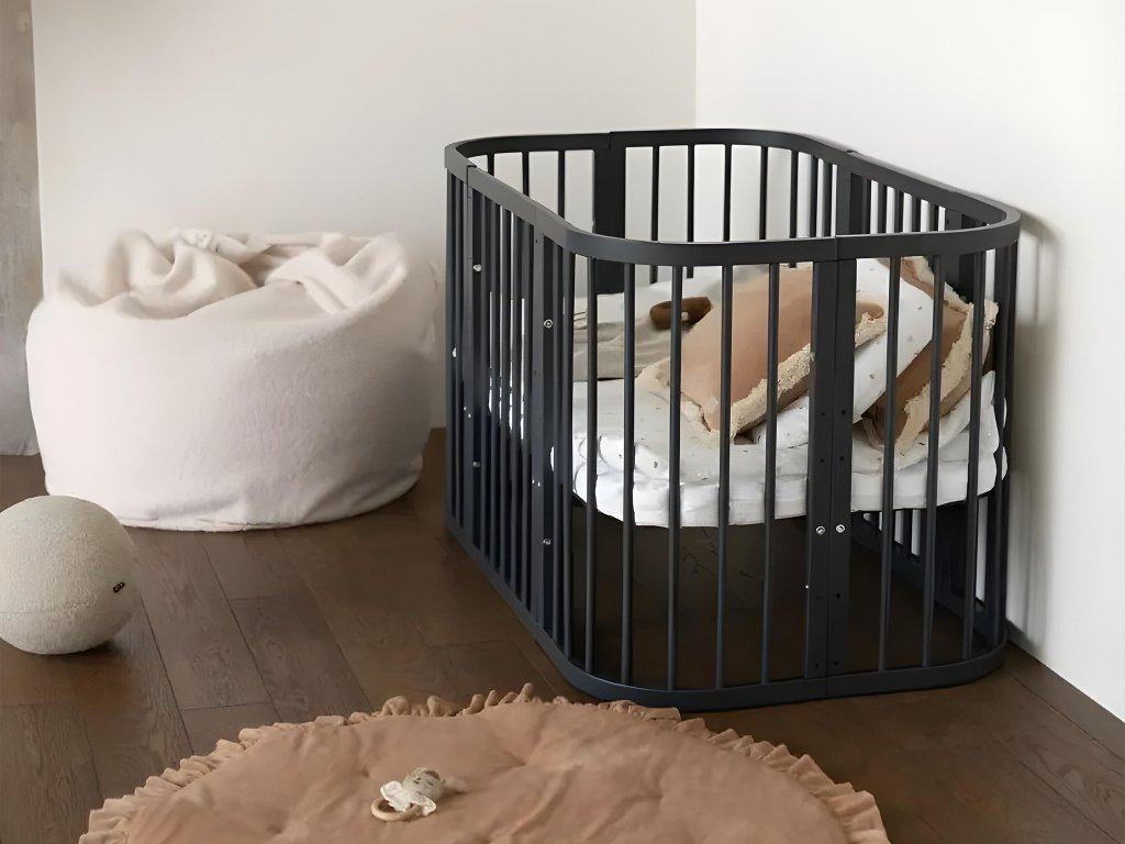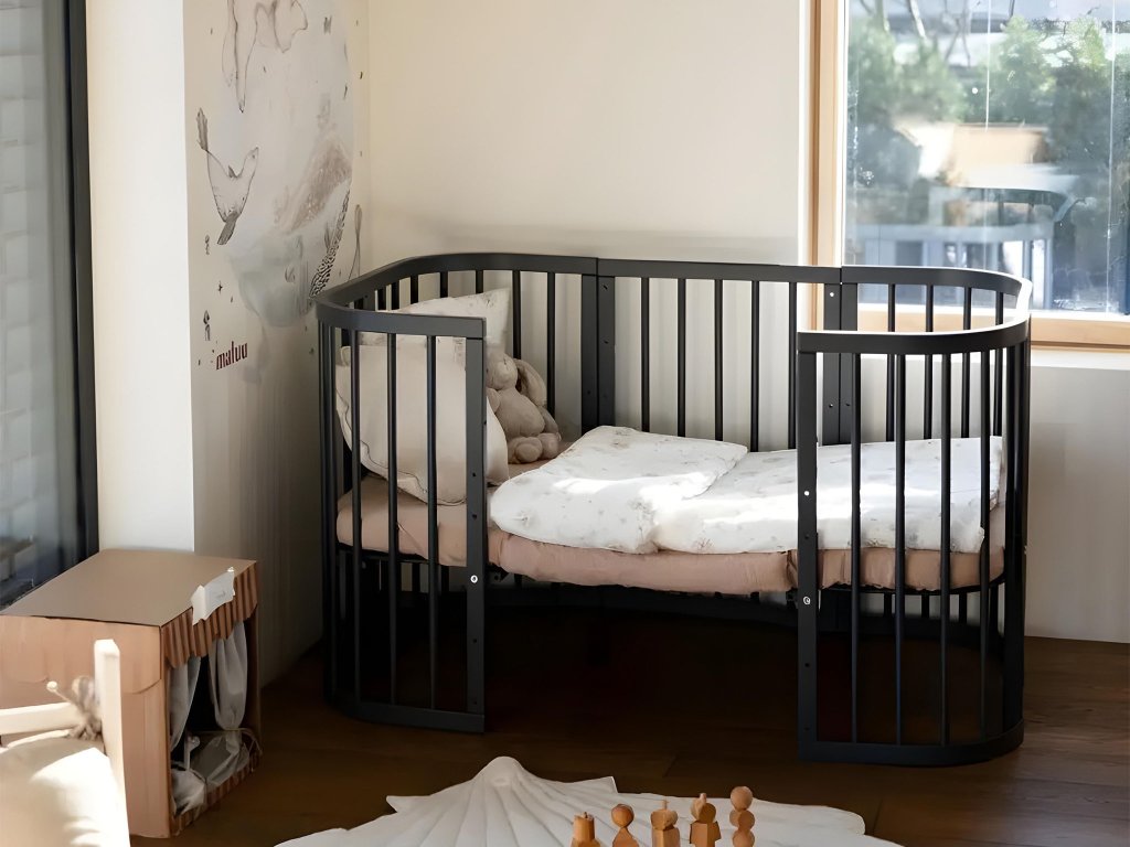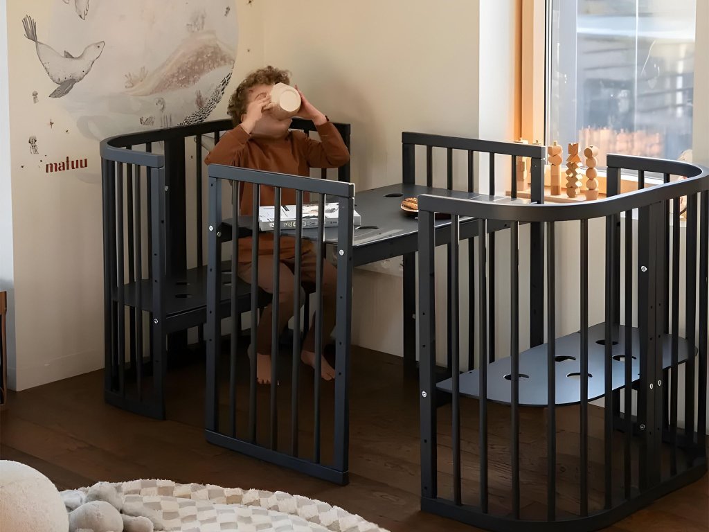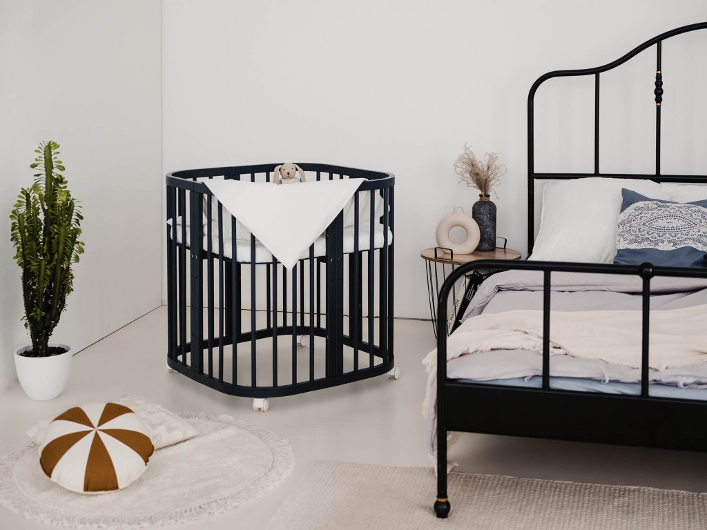 Dizajnová rastúca postieľka 7v1 vo výraznej tmavosivej farbe je bezpečná a variabilná, takže ju môžete postupne zväčšovať, znižovať rošt a nakoniec ju rozložiť na stolík s kresielkami, pri ktorom sa budú deti hrať. S postieľkou rastie aj matrac, ktorý je rozdelený na tri časti. Tie využívate podľa toho, ako máte postieľku zloženú. Rastúca postieľka je dostupná v niekoľkých farbách. Do 6 mesiacov dieťatka môžete využívať prístelku, ktorú si pripevníte o manželskú posteľ alebo postieľku na kolieskach s prebaľovacím pultom. Kolieska majú bezpečnostnú brzdu. Keď postieľku odbrzdíte, viete ju jednoducho presúvať si ju po byte.