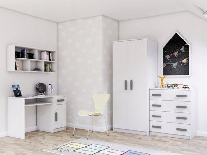 Biely nábytok do detskej alebo študentskej izby so sivými úchytmi