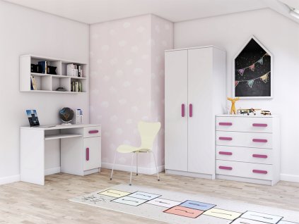 Štýlový a elegantný detský nábytok v bielej farbe s ružovými úchytkami