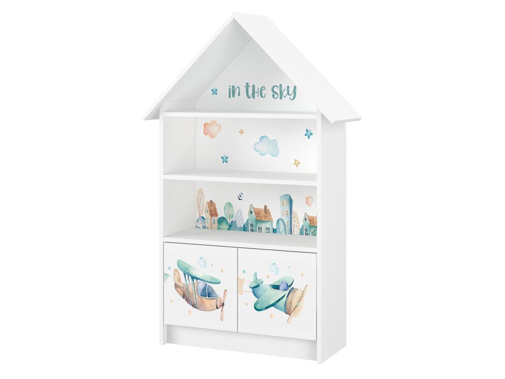 Neváhajte a objednajte pre svoje dieťa detský domčekový regál Lietadlá. Je vhodný do dievčenskej, aj do chlapčenskej izby a svojím krásnym vzorom s lietadielkami a mestečkom vyčarí vašim deťom na tvári úsmev. Jeho otvorené police a dolné skrinky pomôžu udržiavať izbu upratanú.