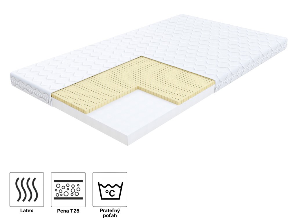 Materiálové zloženie: Polyuretánová pena, Priedušná tkanina, Latex, Poťah