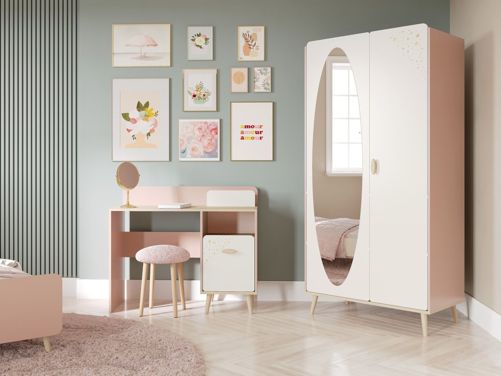 Kolekcia Suzie prináša do detskej izby jemnú eleganciu a moderný dizajn. Je ideálna pre dievčatá, ktoré túžia po útulnom a štýlovom prostredí. Kolekcia obsahuje posteľ, komodu, nočný stolík, šatníkovú skriňu a písací stôl. Suzie je ideálnou voľbou, ktorá spája jemnosť s funkčnosťou a premení detskú izbu na bezpečné a krásne miesto plné snov.