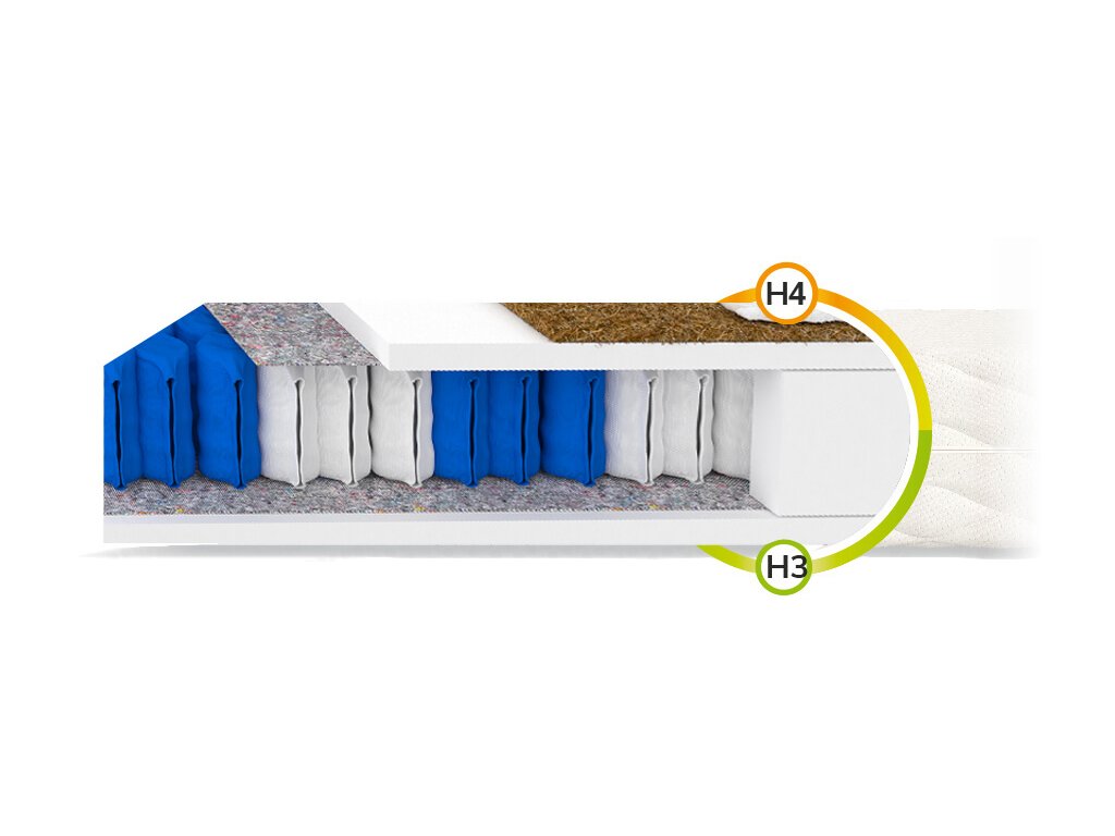 Materiálové zloženie: Filc, NanoHARD, Taštičkové pružiny, Polyuretánová pena, Poťah, Kokosová vrstva