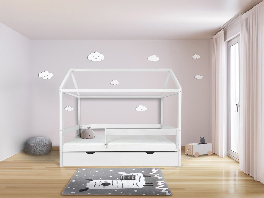 Podporte fantáziu svojho dieťaťa pomocou našej domčekovej postele Pery. Je vyrobená z odolného borovicového dreva, táto posteľ má krásnu bielu farbu, ktorá prináša svetlú a veselú atmosféru. Disponuje jedným lôžkom s rozmerom 90x200 cm, poskytujúc dostatok priestoru pre pohodlný spánok. Tvar domčeka nie lenže podnecuje detskú fantáziu, ale tiež ponúka útulný priestor na hranie. S odnímateľnou zábranou, ktorú je možné flexibilne namontovať na pravú alebo ľavú stranu, zabezpečuje bezpečnosť aj pre tie najnekľudnejšie deti. Posteľ prichádza s latkovým roštom, ktorý zaisťuje správnu podporu a cirkuláciu vzduchu pre matrac. Navyše, súčasťou postele sú aj dva priestranné úložné boxy na kolieskach, ktoré sú ideálne pre ukladanie hračiek, kníh alebo oblečenia, udržiavajúc izbu čistú a upratanú. Praktickosť a šarm postele môžete ďalej zvýrazniť pridaním svetielok alebo iných dekorácií, ktoré zmenia posteľ na skutočnú súčasť detského sna. Detská posteľ Pery sa postará o kvalitný spánok a takisto zábavu pre vaše milované dieťa.