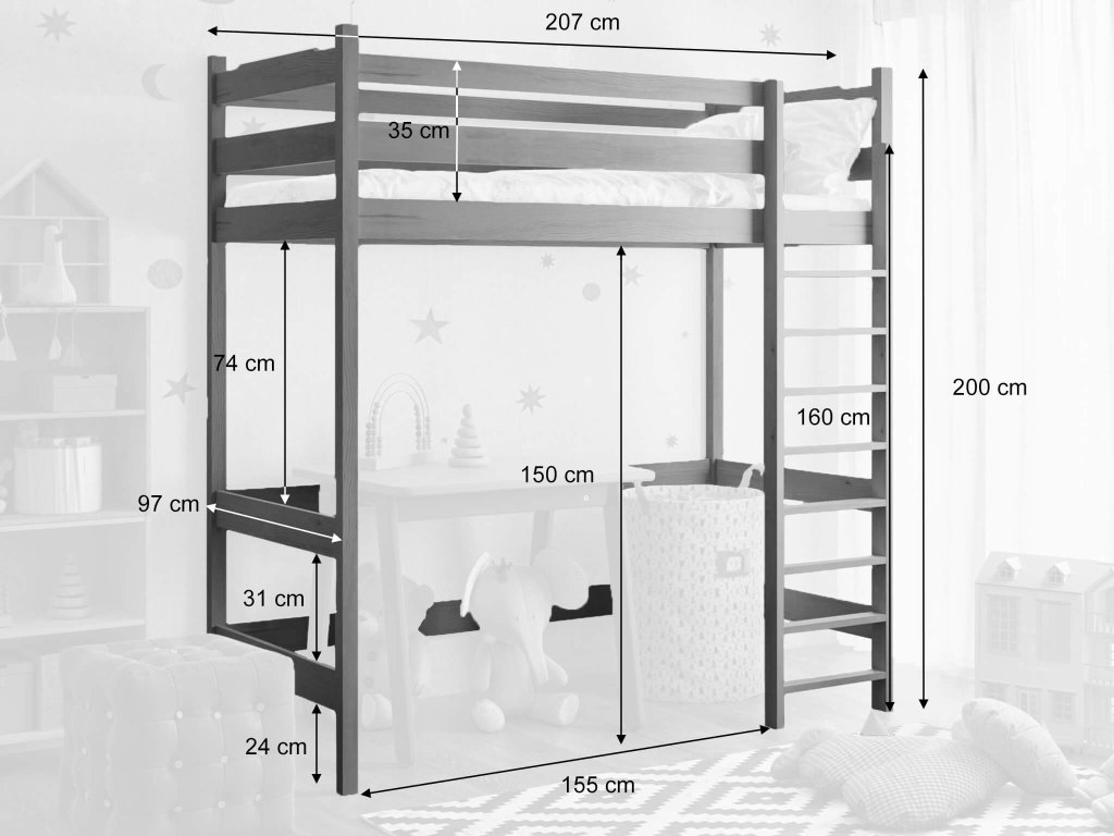 Radi by sme vám predstavili vyvýšenú detskú posteľ Tally, ktorá je vyrobená z masívneho borovicového dreva a je skvelou kombináciou elegancie, funkčnosti a bezpečnosti. Je ideálnym prvkom do každej modernej detskej izby a jej minimalistický dizajn sa skvele hodí k škandinávskemu štýlu. Okrem toho, táto posteľ pomáha rozvíjať zručnosti a kreativitu detí, keďže ponúka možnosť využitia miesta pod posteľou na rôzne aktivity. Napríklad skladovanie hračiek alebo uloženie písacieho stolíka, čím sa získava viac priestoru v izbe a dieťa má praktické riešenie na uskladnenie vecí. Montáž a demontáž postele je veľmi jednoduchá a intuitívna, takže nemusíte mať žiadne obavy z toho, že sa budete musieť trápiť s komplikovanými inštrukciami. Rám postele je vyrobený z kvalitného a odolného borovicového dreva, čo zaručuje jeho stabilitu a bezpečnosť pre dieťa. Posteľ je dodávaná s pevným latkovým roštom, ktorý poskytuje pohodlné a zdravé spanie. Pri montáži môžete tiež zvoliť stranu rebríka, ktorým sa dieťa dostane na posteľ, čo umožňuje prispôsobiť nábytok potrebám každého zákazníka a zabezpečiť, aby bola posteľ skutočne vhodná pre každé dieťa. Vyberte si posteľ Tally pre vaše dieťa a užite si jej krásny dizajn a praktické využitie miesta pod posteľou.