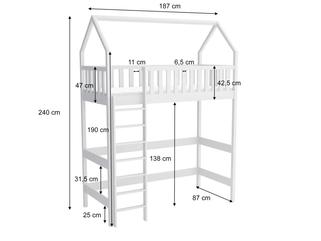 Ak hľadáte pre vaše dieťa drevenú vyvýšenú posteľ, Villa z masívneho borovicového dreva by mohla byť ideálnym riešením. Táto posteľ v minimalistickom dizajne ladiacom k škandinávskemu štýlu poskytuje vyvážený spoj dizajnu, funkcionality a bezpečnosti. Rám nad posteľou pripomína strechu domčeka, čím vytvára pre dieťa nielen komfortné miesto na spanie, ale aj priestor na fantázírovanie. Pod posteľou je miesto na hranie alebo štúdium, čím táto posteľ šetrí miesto v domácnosti a poskytuje možnosť pridať pod ňu napríklad písací stôl. Montovanie a demontovanie postele je jednoduché, takže ju môžete rýchlo a efektívne presunúť na iné miesto. Rebrík postele sa dá umiestniť na ľavú alebo pravú stranu podľa vašich potrieb. Rám postele je vyrobený z odolného borovicového dreva, čo zaručuje bezpečnosť a stabilitu. Pevný latkový rošt tiež prispieva k bezpečnosti a komfortu. Villa je skvelým doplnkom každej detskej izby, ktorá je moderná a štýlová. Táto posteľ je nielen funkčná a bezpečná, ale aj krásne prevedená. Využite priestor v detskej izbe efektívnejšie a poskytnite svojmu dieťaťu priestor na štúdium, hranie a fantázírovanie s touto vyvýšenou posteľou.