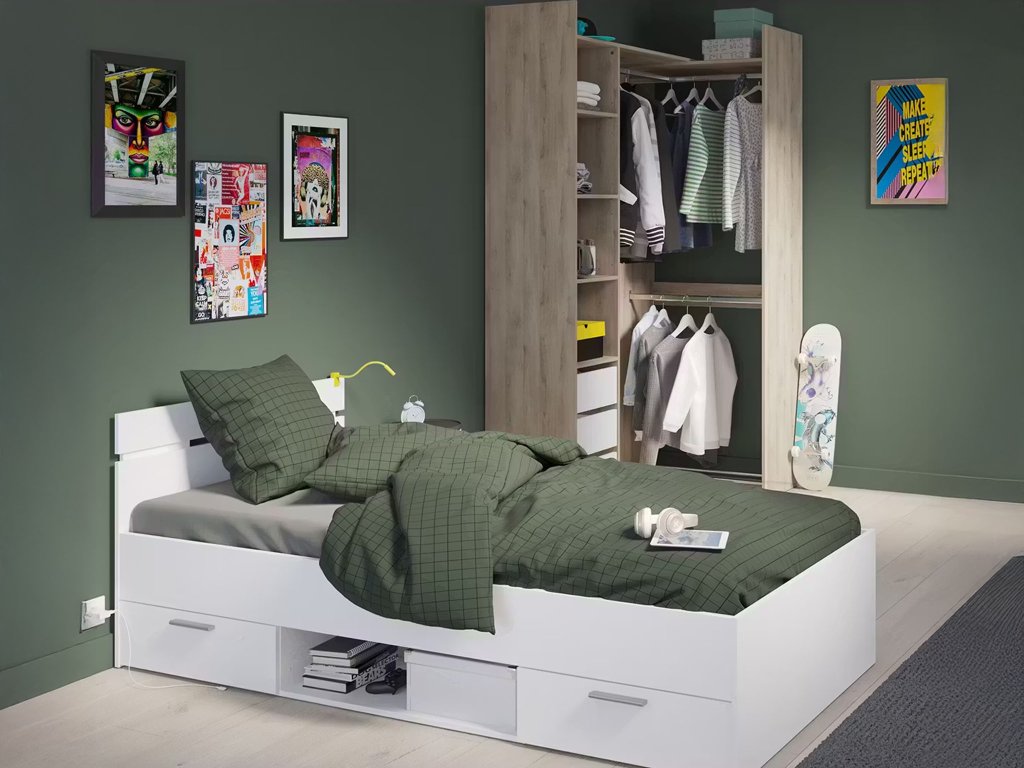 Detská posteľ Michigan je skvelou voľbou pre rodičov, ktorí chcú do izby svojho dieťaťa vniesť čistotu, poriadok a funkčný dizajn v modernom štýle. V nadčasovej bielej farbe pôsobí ľahko a svetlo, čo ju robí univerzálnou voľbou pre chlapcov aj dievčatá. Čisté línie dopĺňajú dve priestranné zásuvky, ktoré hravo pojmú hračky, oblečenie či posteľnú bielizeň. Posteľ je navrhnutá s dôrazom na praktickosť – ponúka dostatok úložného priestoru bez toho, aby zaberala viac miesta, než je potrebné. Ideálne riešenie pre moderné detské izby, kde sa spája štýl s každodennou funkčnosťou.