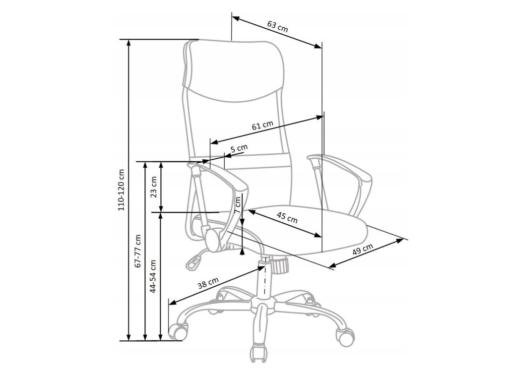 - Rozmer stoličky (šxvxh): 61 x 110/120 x 63 cm
