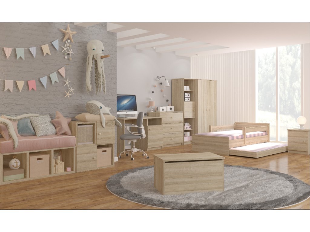 Truhlica na hračky je zhotovená z kvalitnej DTD v dvoch príjemných farbách a to buď vo farbe nórska borovica, alebo dub sonoma. Truhlica je 100% ekologická, vďaka použitým prírodným materiálom a má aj certifikát pre bezpečnosť a zdravotnú nezávadnosť. Môžete ju jednoducho vyčistiť saponátom. Ku truhlici si môžete dokúpiť aj iný nábytok z kolekcie Max, vytvoríte tak krásnu detskú izbu pre Vaše dieťa.