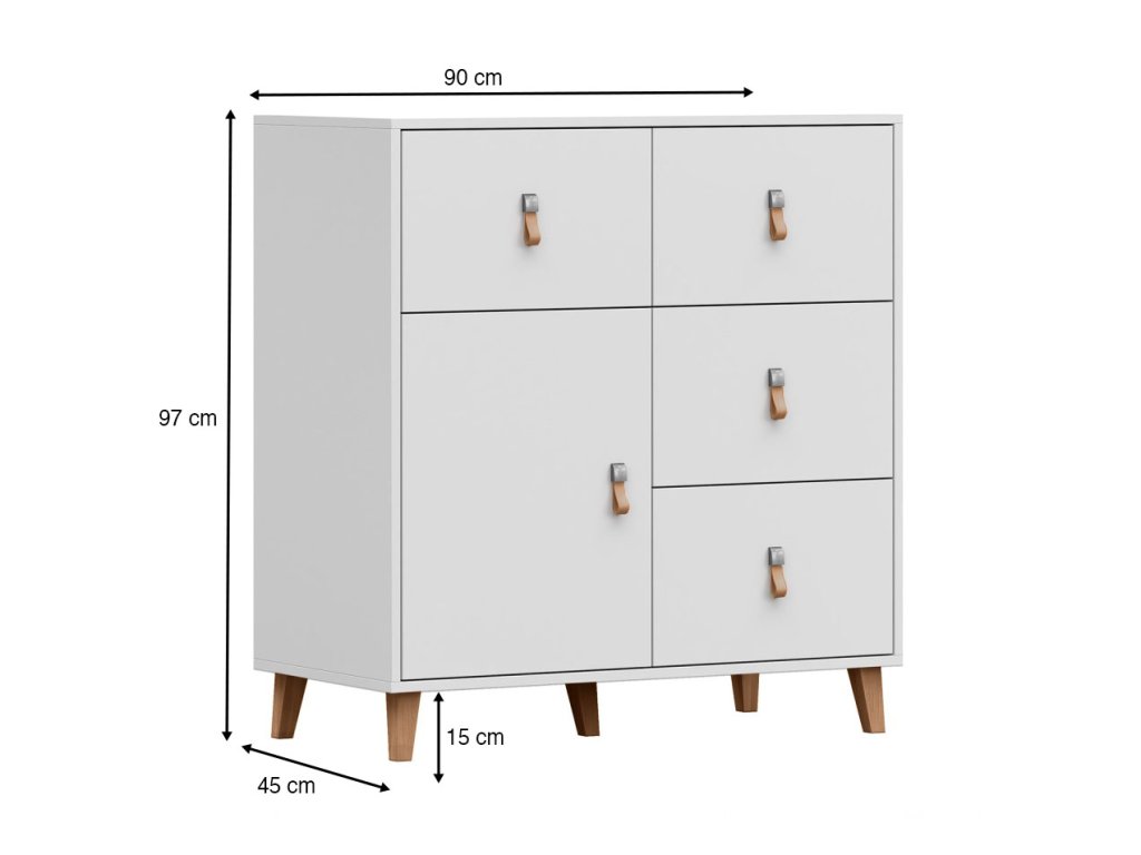 - Materiál: DTD / kožené rukoväte / drevené nohy