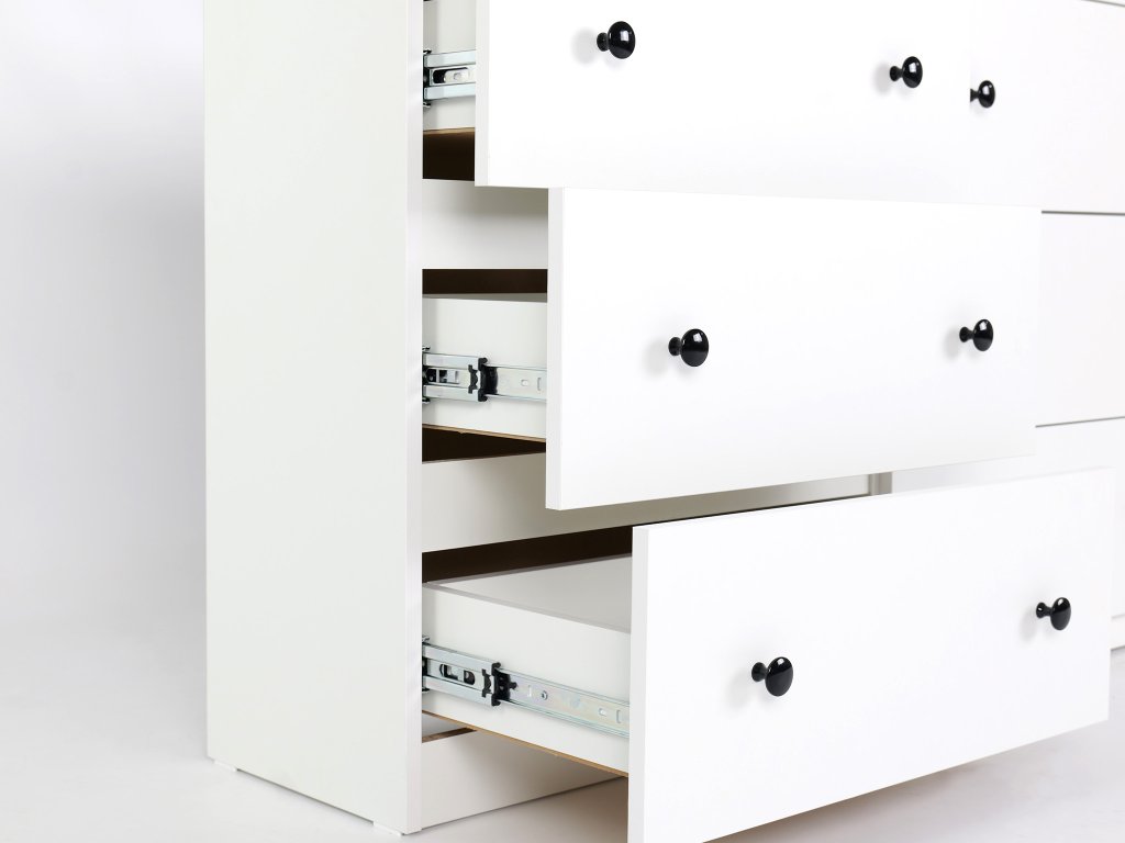 Komoda je dodávaná s čiernymi lesklými úchytmi. Ku komode si môžete dokúpiť rôzne farebné prevedenia úchytov.