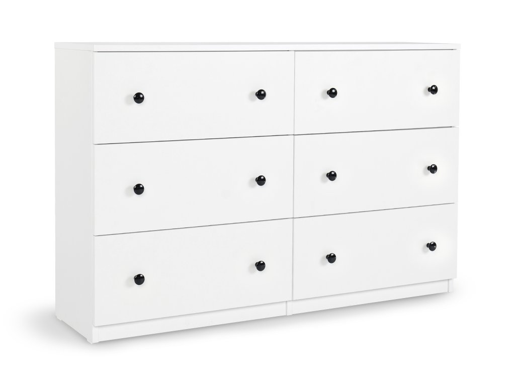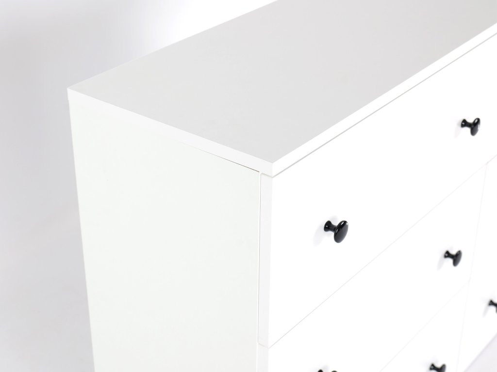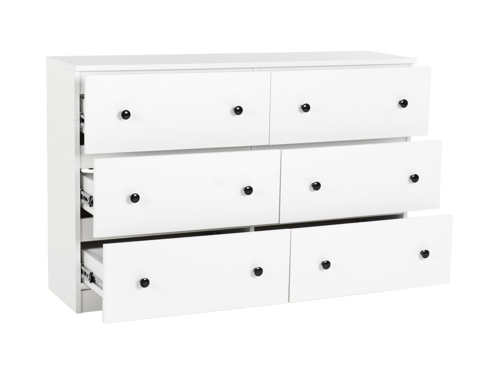 Dodajte svojmu interiéru nádych štýlu a praktickosti s komodou Leo 120 v univerzálnej bielej farbe s čiernymi lesklými úchytkami. Tento široký kus nábytku ponúka šesť priestranných zásuviek, ktoré sú ideálne na organizáciu oblečenia, dokumentov a ďalších potrebných vecí. S jej minimalistickým dizajnom a kontrastom bielej farby s čiernymi úchytkami sa stáva nadčasovým doplnkom vhodným do každého interiéru. Komoda Leo 120 je perfektným spojením funkčnosti a moderného štýlu, ktorý obohatí atmosféru vášho domova.