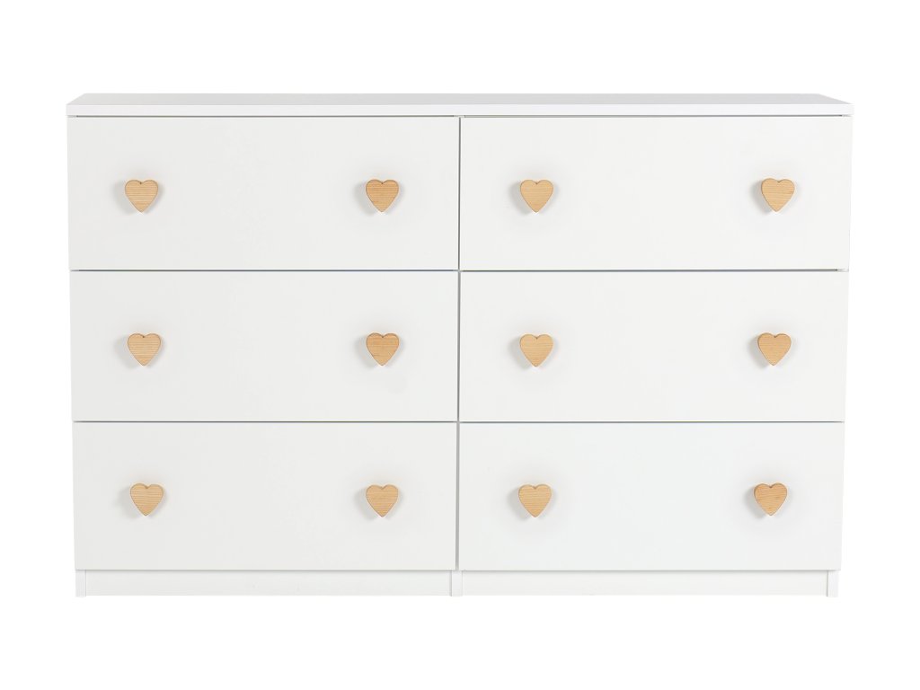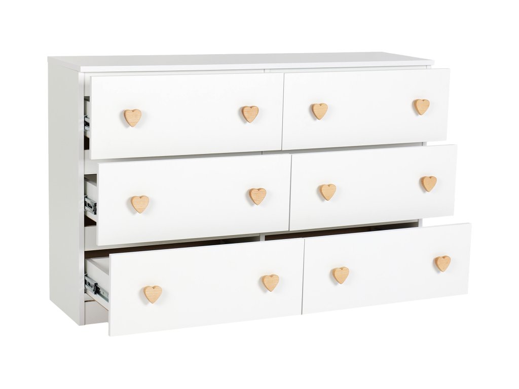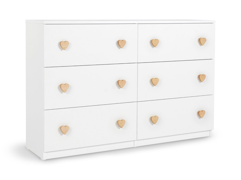 Komoda je dodávaná s úchytkami v tvare srdca. Ku komode si môžete dokúpiť rôzne farebné prevedenia úchytov.