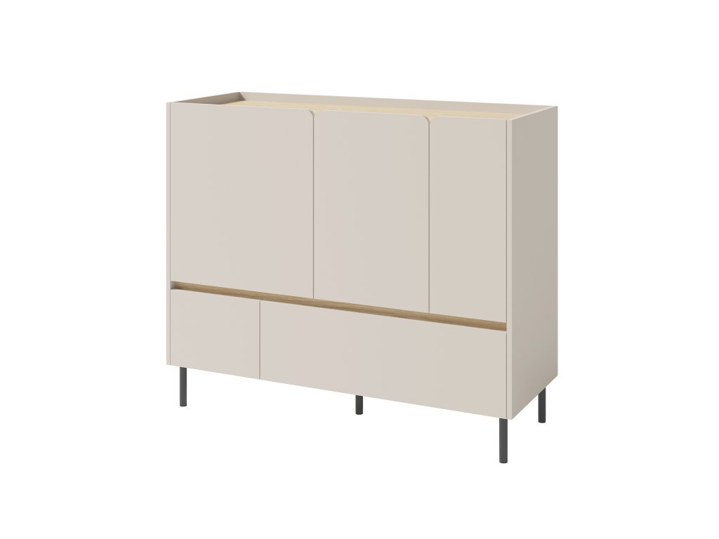 Komoda do detskej izby LUCA S8 na vysokých čiernych nožičkách. Moderná komoda má dve zásuvky a tri dvierka pričom jednotlivé skrinky sú vnútri ešte predelené policou pre lepšie využitie úložného priestoru. Komodu si v detskej izbe môžete umiestniť napríklad vedľa písacieho stola a poukladať do nej všetky školské a písacie potreby, aby ich dieťa malo pri učení vždy poruke. Trojdverová komoda s dvomi zásuvkami je vyrobená z kvalitnej laminovanej dosky s hrúbkou 16 mm. Hrany sú zakončené odolnou ABS dyhou. Zásuvky a dvierka majú bezúchytové otváranie.