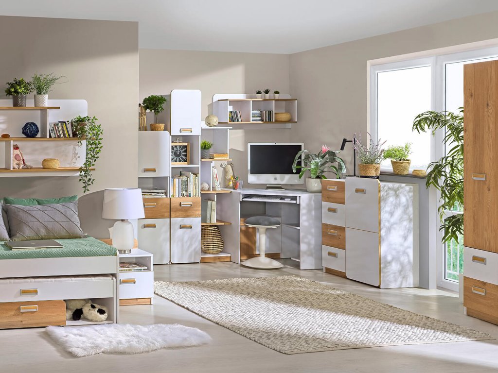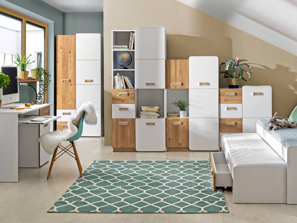 Rozhodli ste sa zariadiť detskú izbu štýlovým a moderným nábytkom? Máme pre Vás riešenie, v podobe sektorového nábytku LUCAS. Nábytok sa vďaka svojmu dizajnu hodí ako do detskej , tak aj študentskej izby či pracovne. Farebná dvojkombinácia osvieži každý interiér. Veľké plus sú zaoblené hrany nábytku čo oceníte v prípade najmenších používateľov. Všetky kusy nábytku k sebe perfektne sedia, preto je len na Vašej fantázii, akú izbu vyskladáte. Kolekcia LUCAS je vyrobená z kvalitných materiálov a budete si ho užívať dlhé roky.