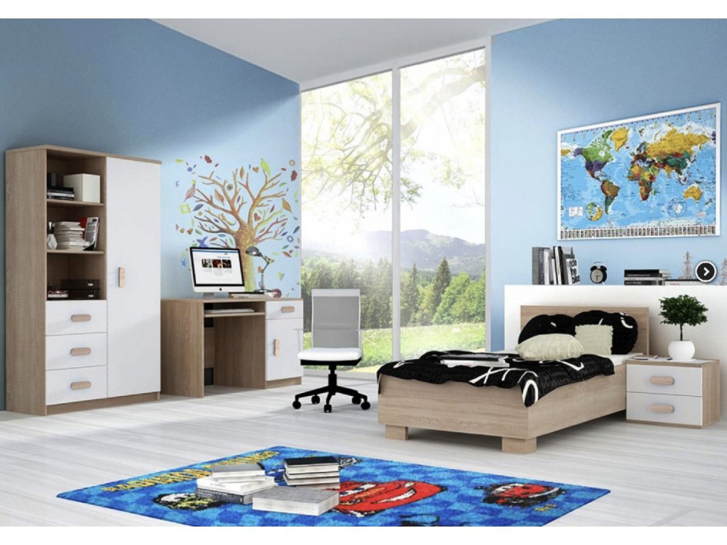 Krásny dizajnový kus nábytku ktorého základnou farbou je dub sonoma. Farba navodí detskej izbe čistý, jednoduchý a kľudný dojem. Vďaka nadčasovému dizajnu nábytok z kolekcie SVEND poslúži Vašim deťom dlhé roky.