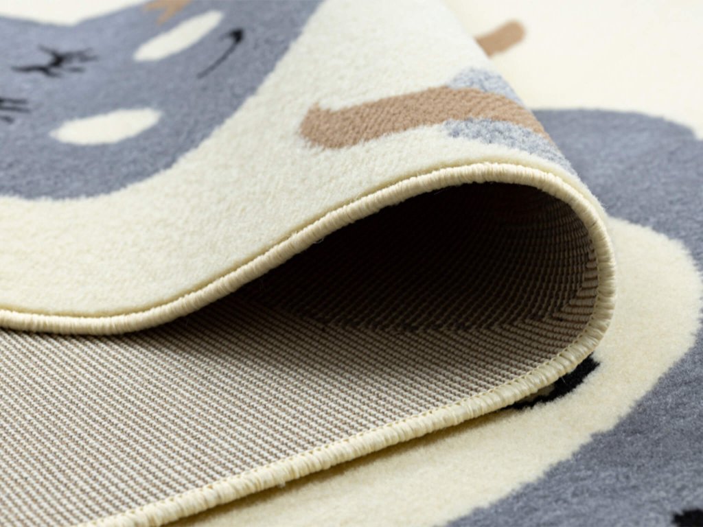 Pomocou doplnku ako je koberec je možné zútulniť veľké priestory v domácnosti a zároveň prináša príjemnejšiu atmosféru. Ponúkame vám veľký koberec v krémovo-sivej farbe s motívom Ovečky. Koberec je vhodný do väčších detských izieb, kde poskytuje širokú hraciu plochu pre vaše deti. Zároveň je koberec aj bezpečným miestom pre prvé kroky vašej ratolesti. Hustota štetiny je 1200 g/m2 typu Frieze s výškou vlasu 9 milimetrov. Polypropylénové (PP) vlákna sú mäkké a pružné vďaka tepelnému spracovaniu a svojej perleťovej textúre pripomínajú ručne tkané koberce. Na čistenie koberca stačí vysávač či jemne navlhčená utierka. Koberec s motívom Ovečka je možné umiestniť na plochu, kde je podlahové kúrenie. Je k dispozícii vo viacerých rozmeroch.