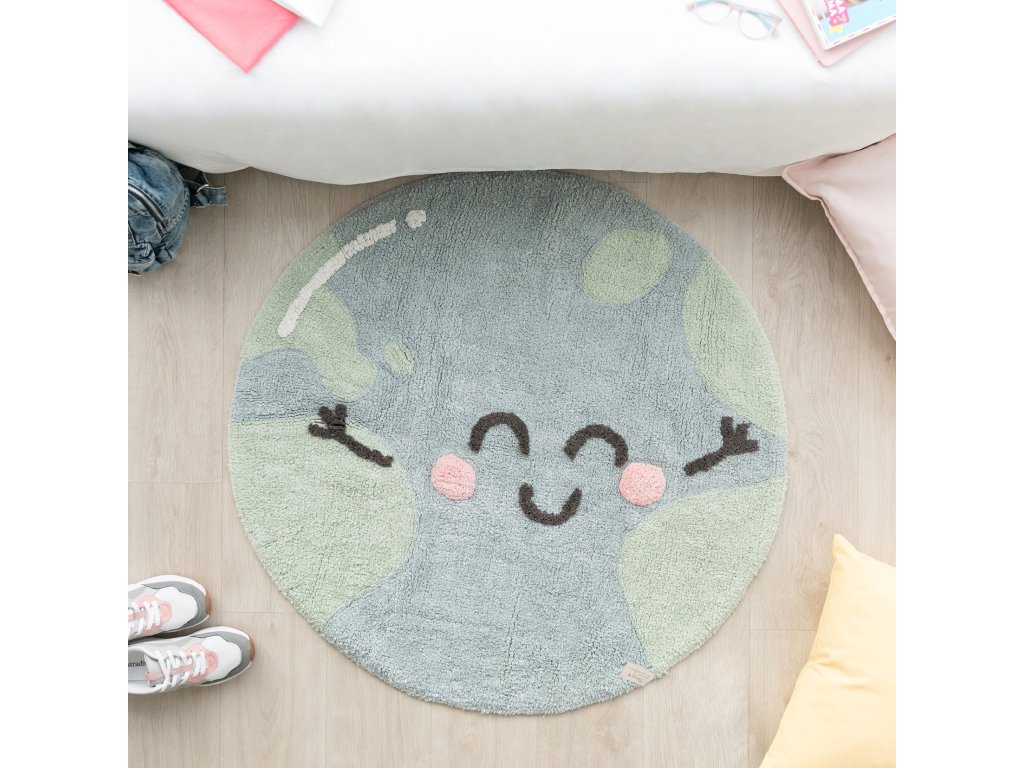 Originálny koberec s motívom zemegule. Koberce Lorena Canals sú moderné a mimoriadne štýlové, dokonale budú ladiť s interiérom pre deti. Koberec je ručne vyrobený zo 100% bavlny, takže si môžete byť istí, že bude bezpečný a pohodlný pre Vaše deti. Okrem moderného a zábavného vzhľadu sa jednoducho udržuje v čistote. Môžete ho prať v práčke s kapacitou 6 kg.