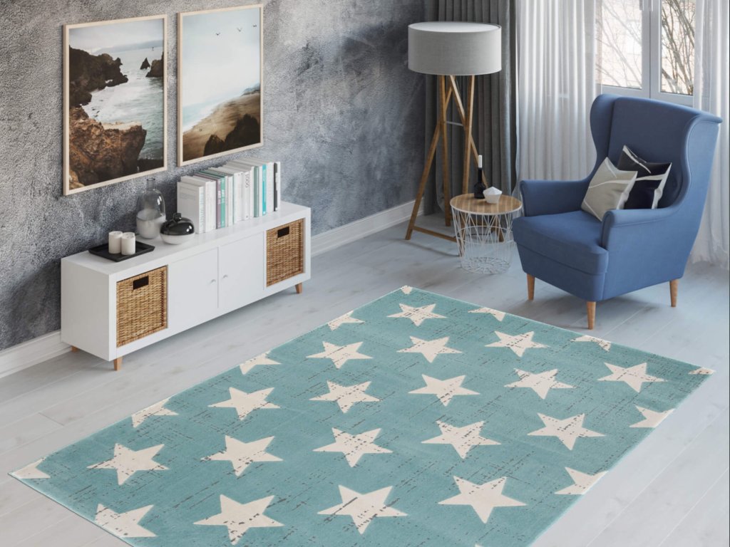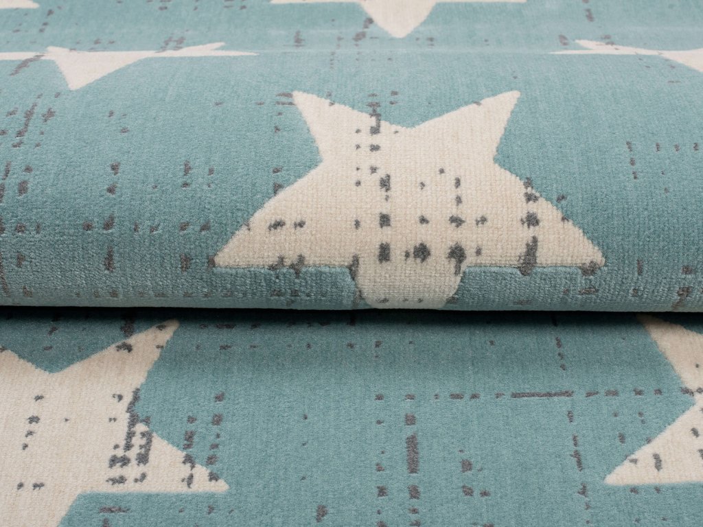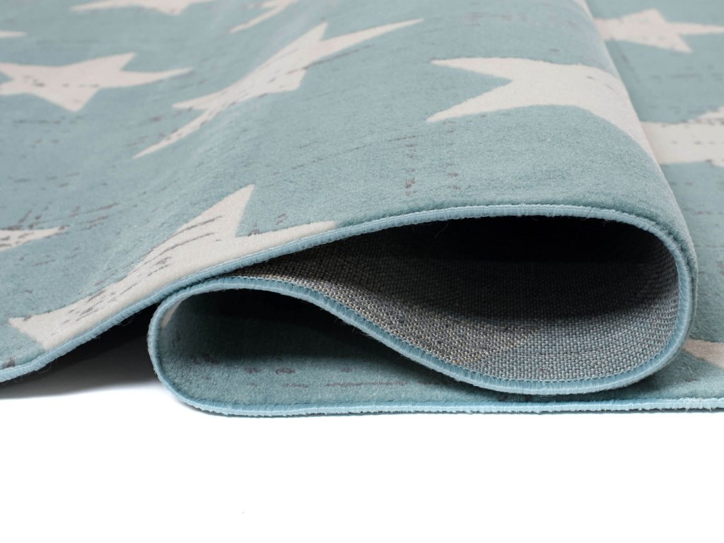 Koberec Parma do detskej izby s dizajnom hviezdičiek v pastelovej modrej farbe skombinovanej s bielou a sivou si získa pozornosť vašich najmenších. Koberec je vyrobený zo 100% polypropylénových vlákien. Použitý materiál sa ľahko čistí a je odolný proti oderu, vďaka čomu nespôsobuje problémy pri každodennom používaní. Vlákna koberca sú veľmi mäkké.