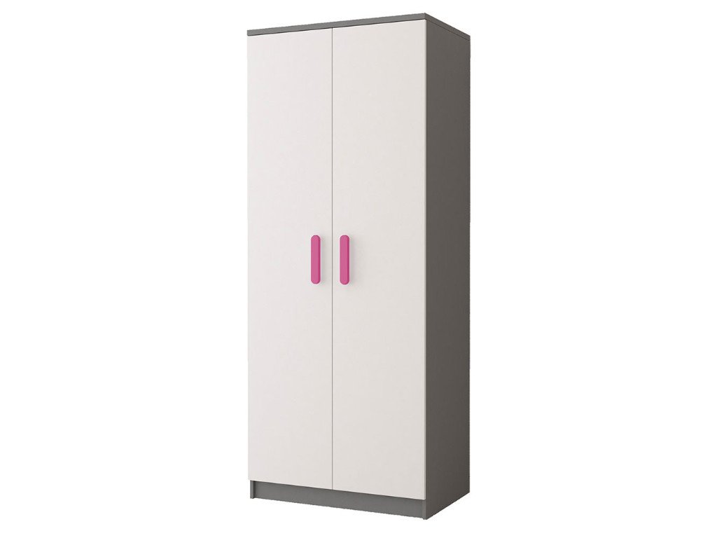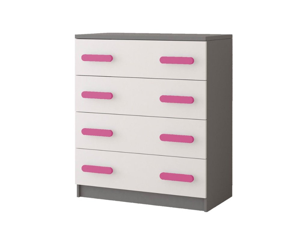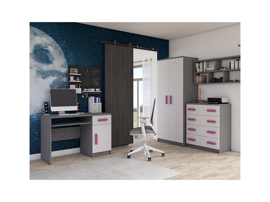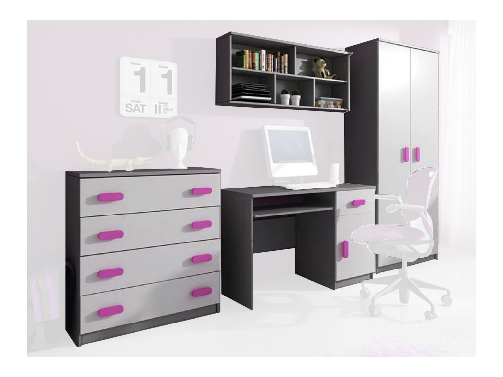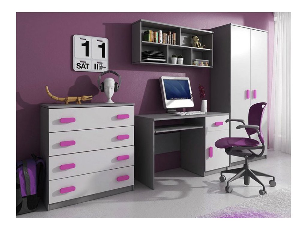 Krásna nábytková zostava s ružovými úchytmi vhodná do dievčenskej izbičky.
