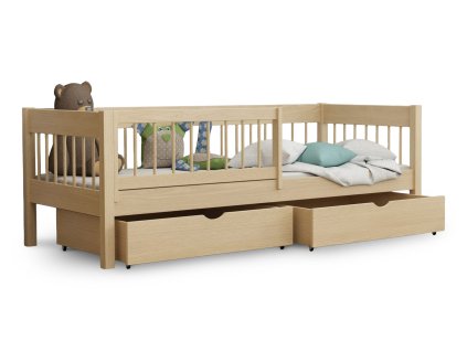 Detská posteľ Lesanka 200x90 z borovicového dreva s úložnými zásuvkami a bezpečnostnou zábranou