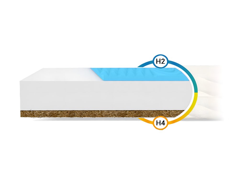Materiálové zloženie: Polyuretánová pena, Kokosová vrstva, Studená HR pena, Poťah