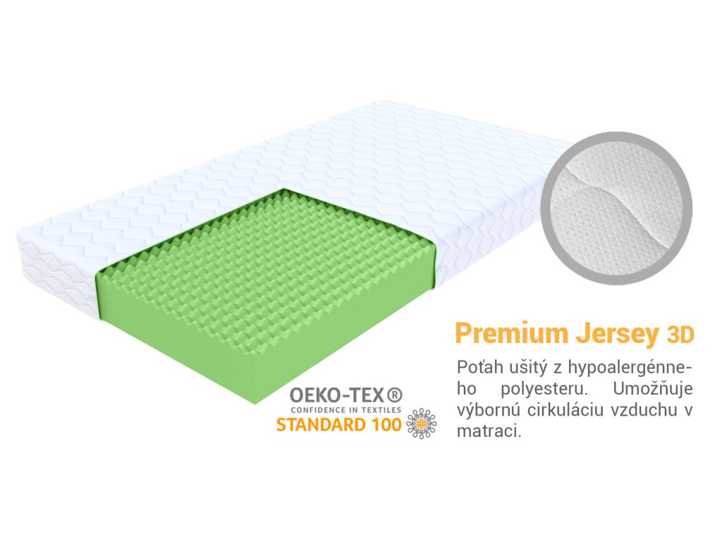 Matrac má poťah na zips a je možné ho prať v práčke na 30°C. Poťah Premium Jersey 3D má antialergické vlastnosti. Umožňuje výbornú cirkuláciu vzduchu v matraci.