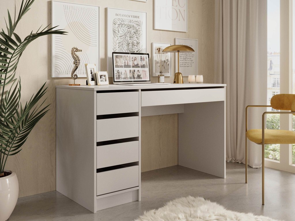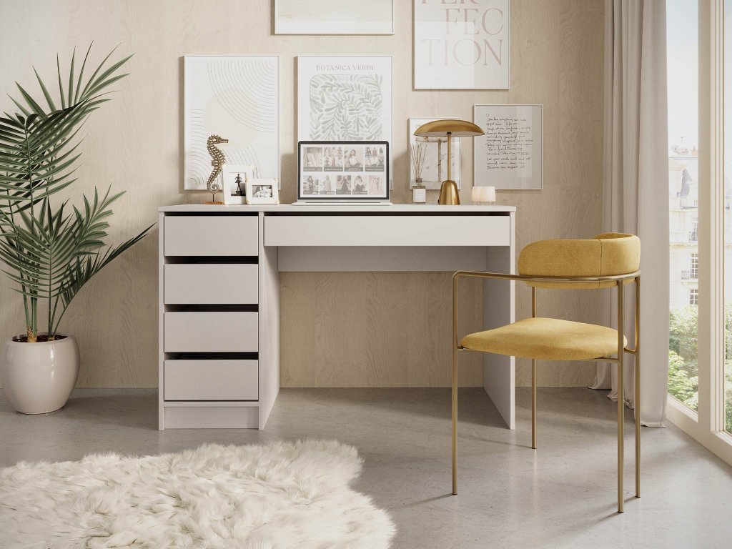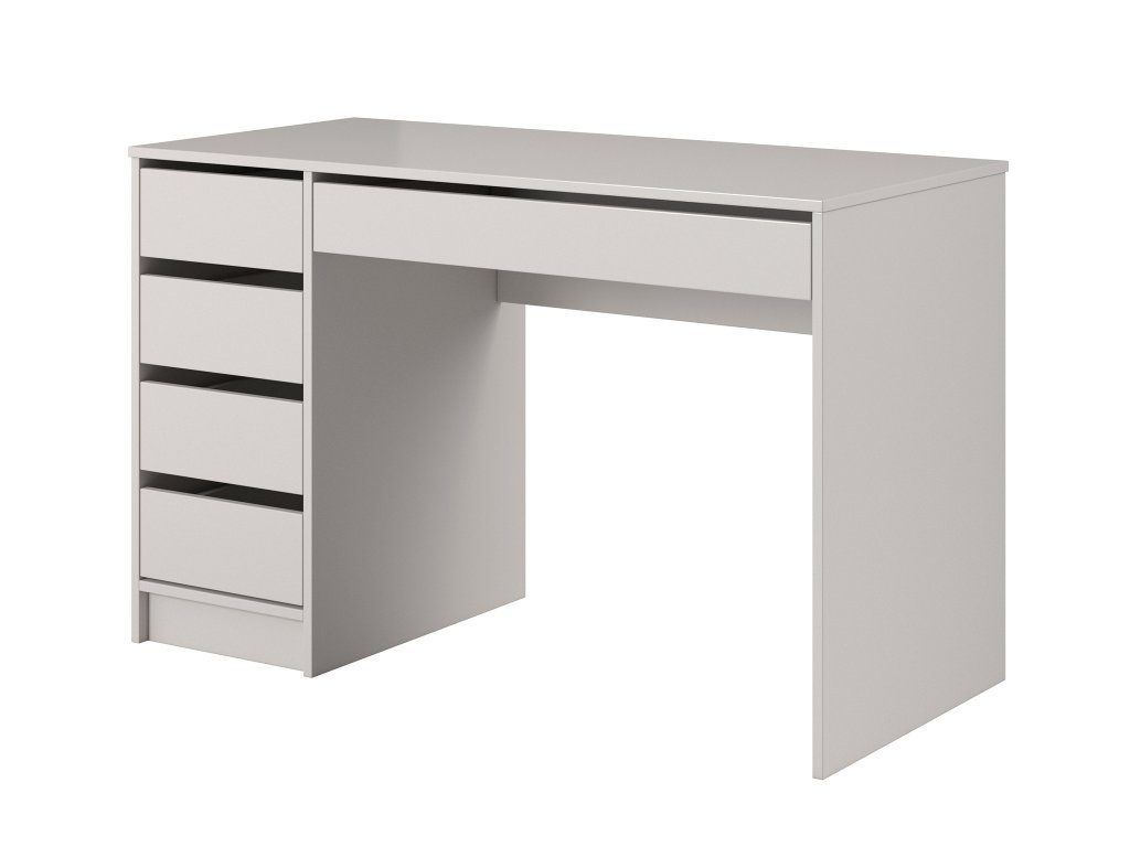 Dodajte svojej pracovni eleganciu a praktickosť s písacím stolom ADA v matnom kašmírovom prevedení. Ideálny nielen do kancelárie, ale aj do študentskej izby, kde ohúri svojim moderným dizajnom a funkčným riešením. Vyrobený je z odolnej 16 mm laminovanej dosky, pričom jeho okraje sú spevnené ABS hranami pre dlhú životnosť. Zadná časť je z pevnej HDF dosky. Päť priestranných zásuviek s hladkým pohybom na vodiacich kladkách poskytne dostatok úložného priestoru pre dokumenty a pracovné pomôcky. Vďaka obojstrannému prevedeniu si môžete zásuvky namontovať na ľavú alebo pravú stranu podľa vašich potrieb. Kašmírový odtieň dodáva stolíku sofistikovaný vzhľad, ktorý skvele zapadne do moderných aj klasických interiérov. Pre dokonalú pracovnú zostavu stačí už len doplniť pohodlnú kancelársku stoličku a vytvoriť si priestor, v ktorom sa vám bude pracovať s ľahkosťou.