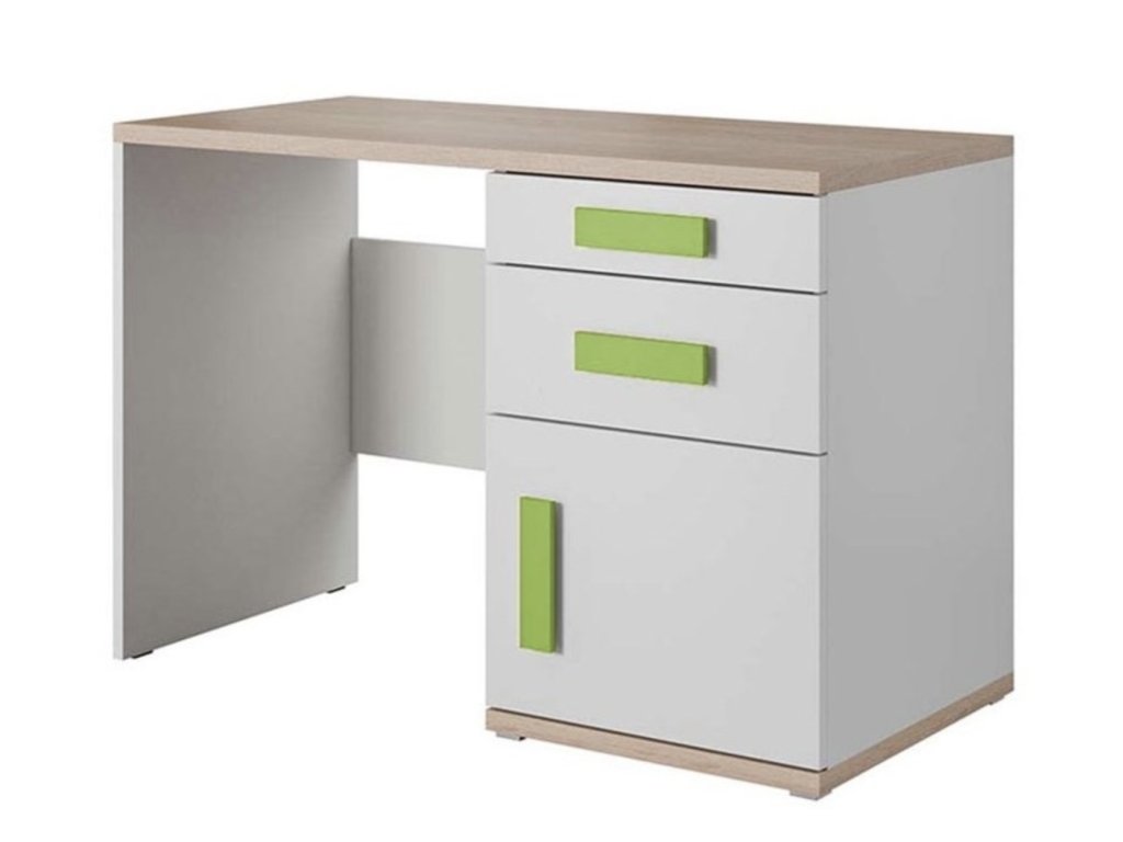 Elegantný písací stolík biely v kombinácii s farbou dub sonoma sa hodí do každého interiéru detskej či študentskej izby. Vďaka nadčasovosti tento nábytok porastie s Vašim dieťaťom a bude mu slúžiť dlhé roky. Zakúpením farebných úchytov dodáte detskej izbe veselosť a hravosť.Úložný priestor pozostáva z jednodverovej skrinky s poličkou a z 2 zásuviek.