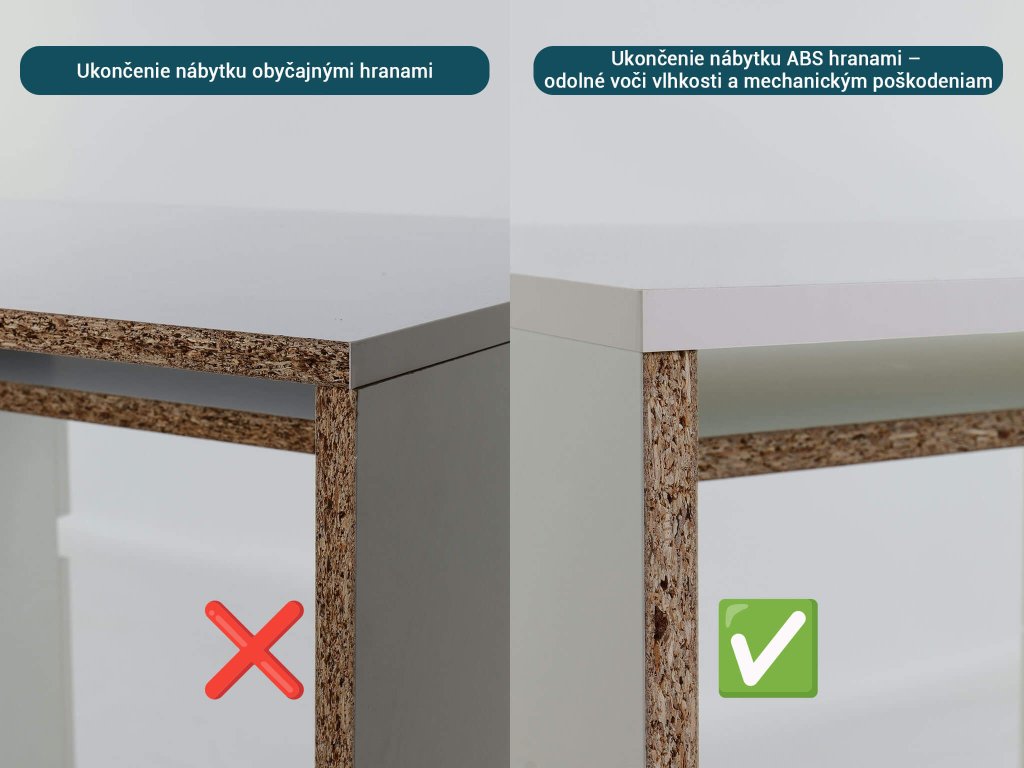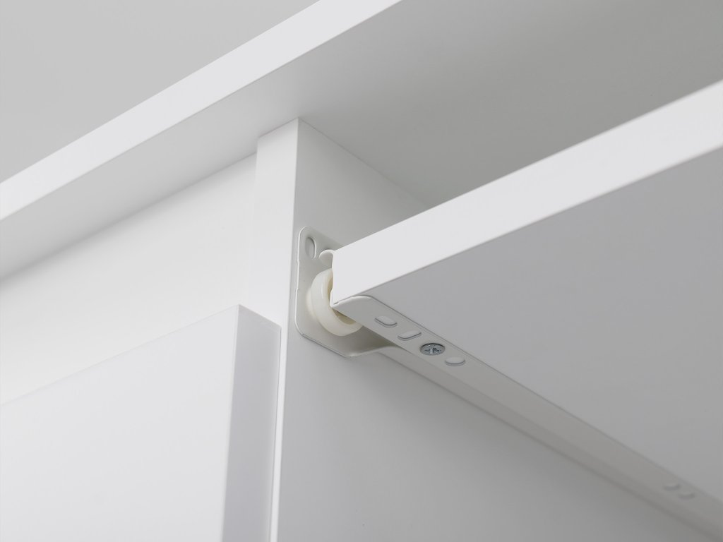 - Materiál: drevotriesková doska KRONO, hrany PVC, kovové koľajničky